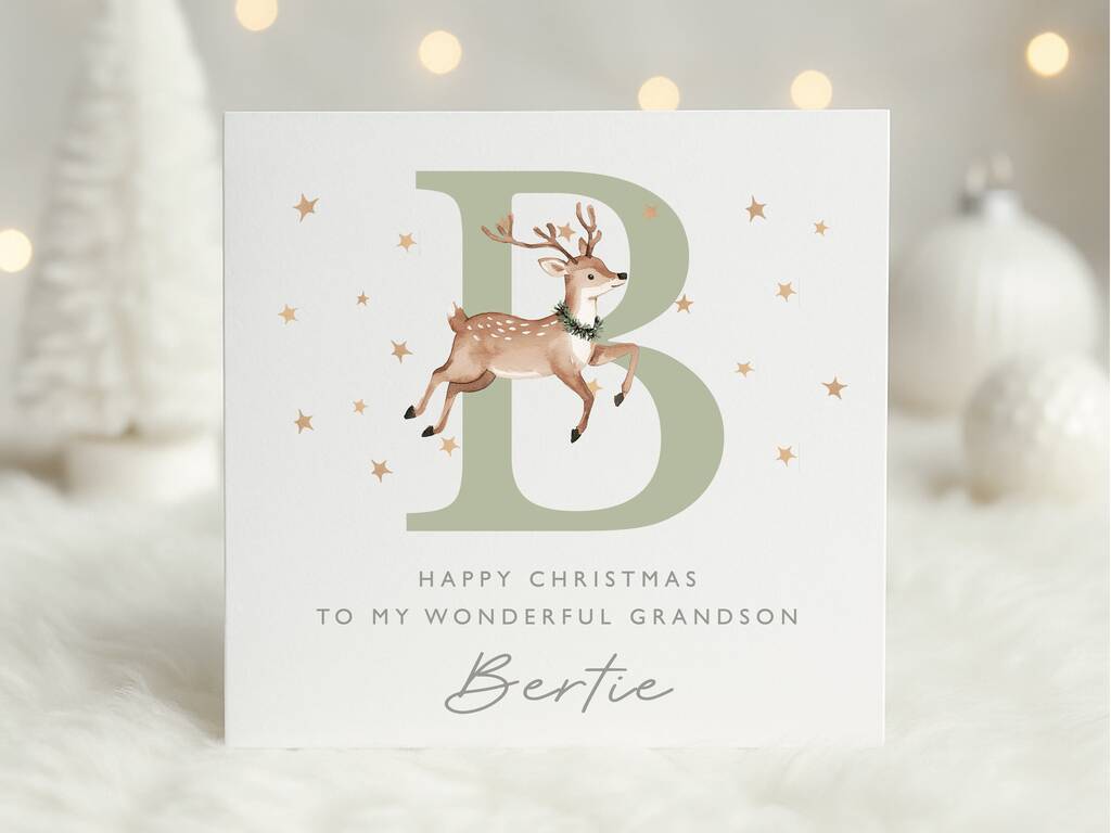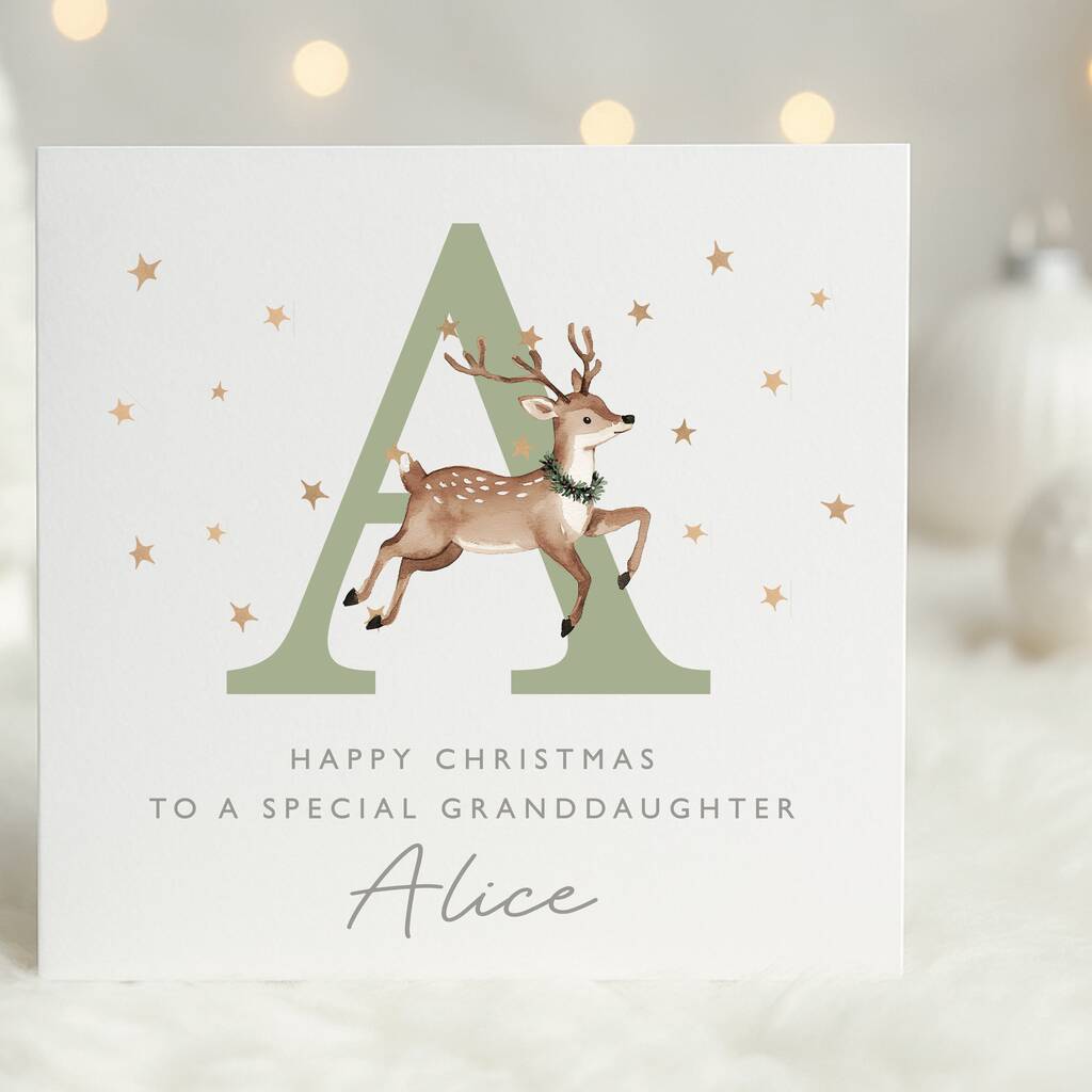 Personalised Christmas Reindeer Granddaughter Initial Card