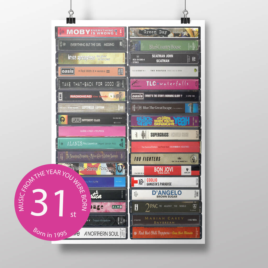 31st Birthday, Music From 1995, 30th Personalised Print