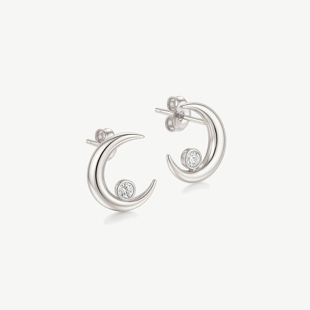Gold Or Silver Women's Dainty Crescent Moon And Star Stud Earrings, 1 of 6