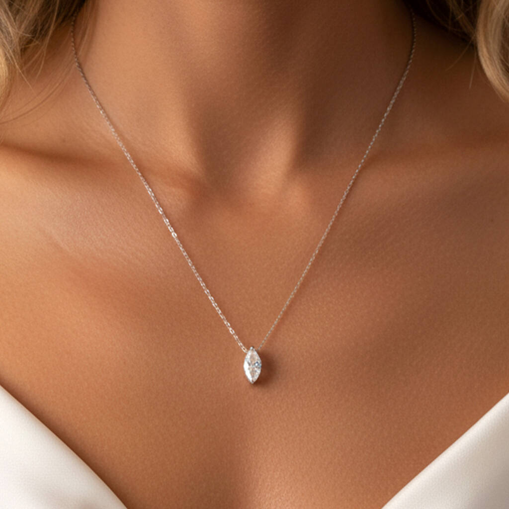 Gold Or Silver Women’s Dainty Marquise Stone Necklace, Christmas Jewellery Gift For Her
