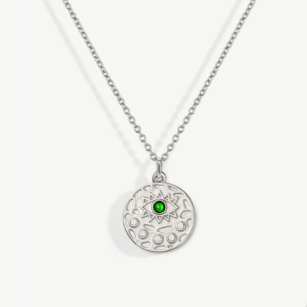 • Gold Or Silver Women's Evil Eye Textured Coin Necklace, Christmas Jewellery Gift For Her, thumbnail 1 of 6