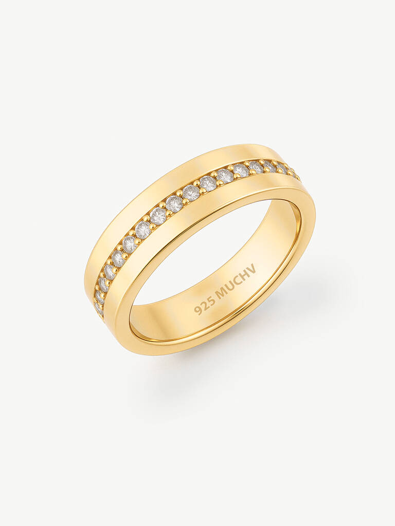 Women's Thick Cigar Band Ring With Sparkling Stones In 18k Gold