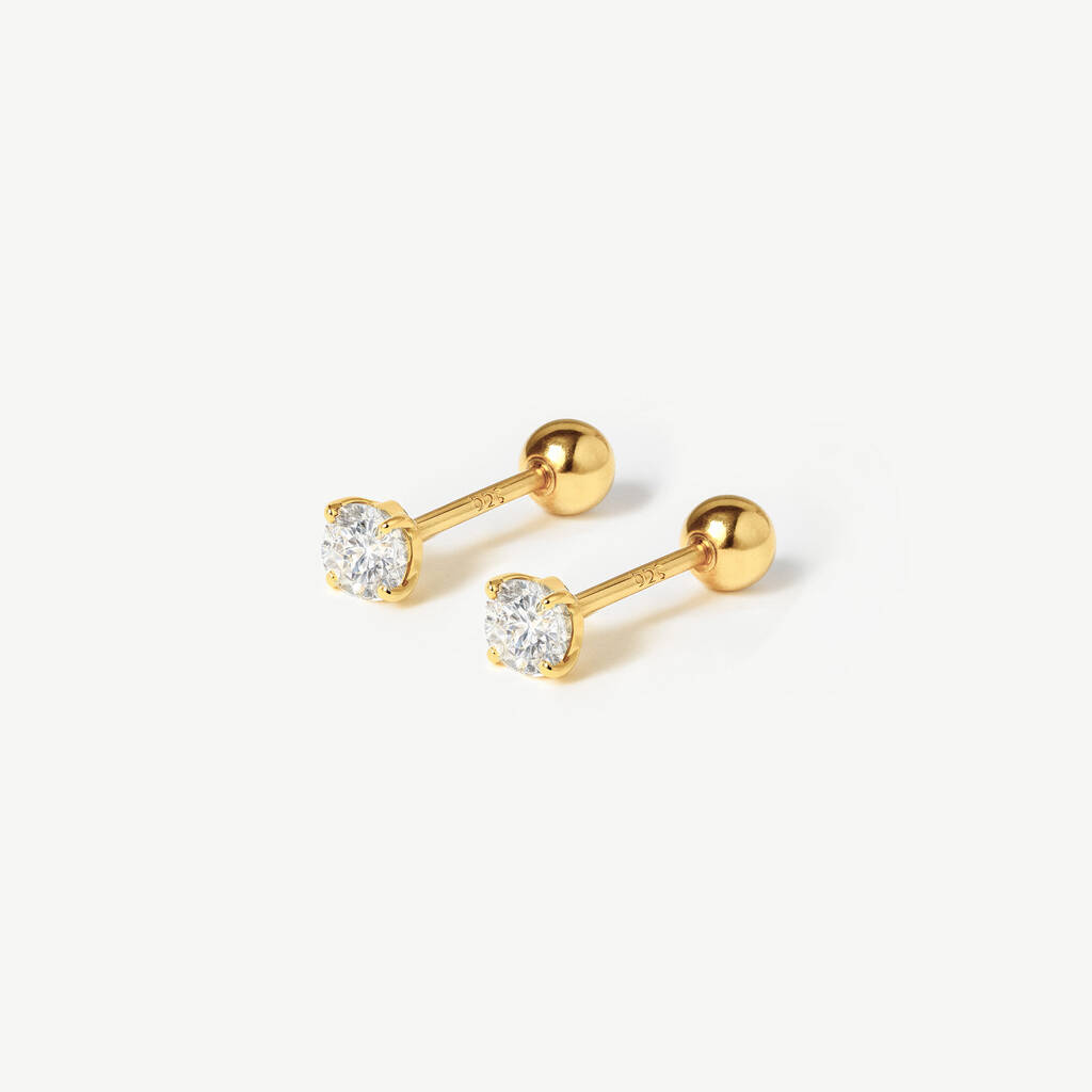 Women's 4mm Solitaire Round Stone Earrings – Screw Back In 18k Gold
