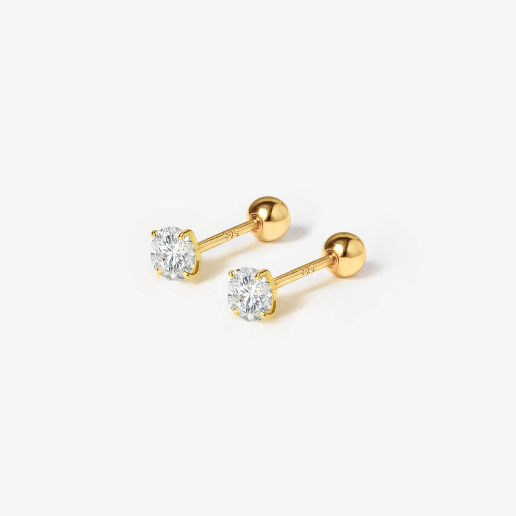 Women's 5mm Solitaire Round Stone Earrings – Screw Back In 18k Gold, 1 of 4