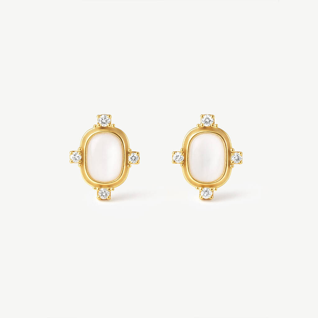 Women's White Pearl Heirloom Stud Earrings In 18k Gold