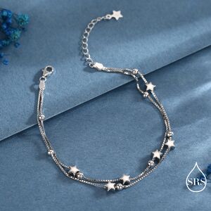Sterling Silver Little Twinkle Stars Charm Anklet
