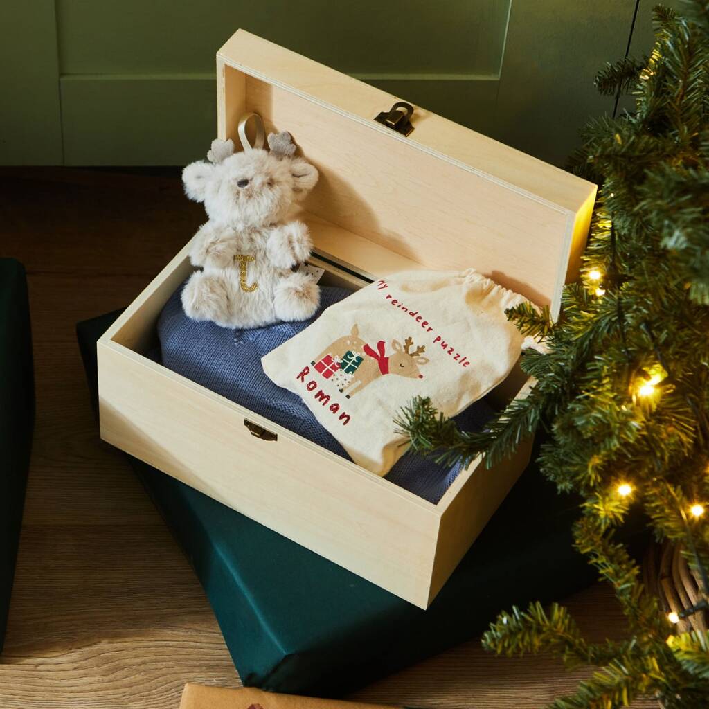 Personalised Wooden Checkered Blue Christmas Tree Keepsake Box Fsc®