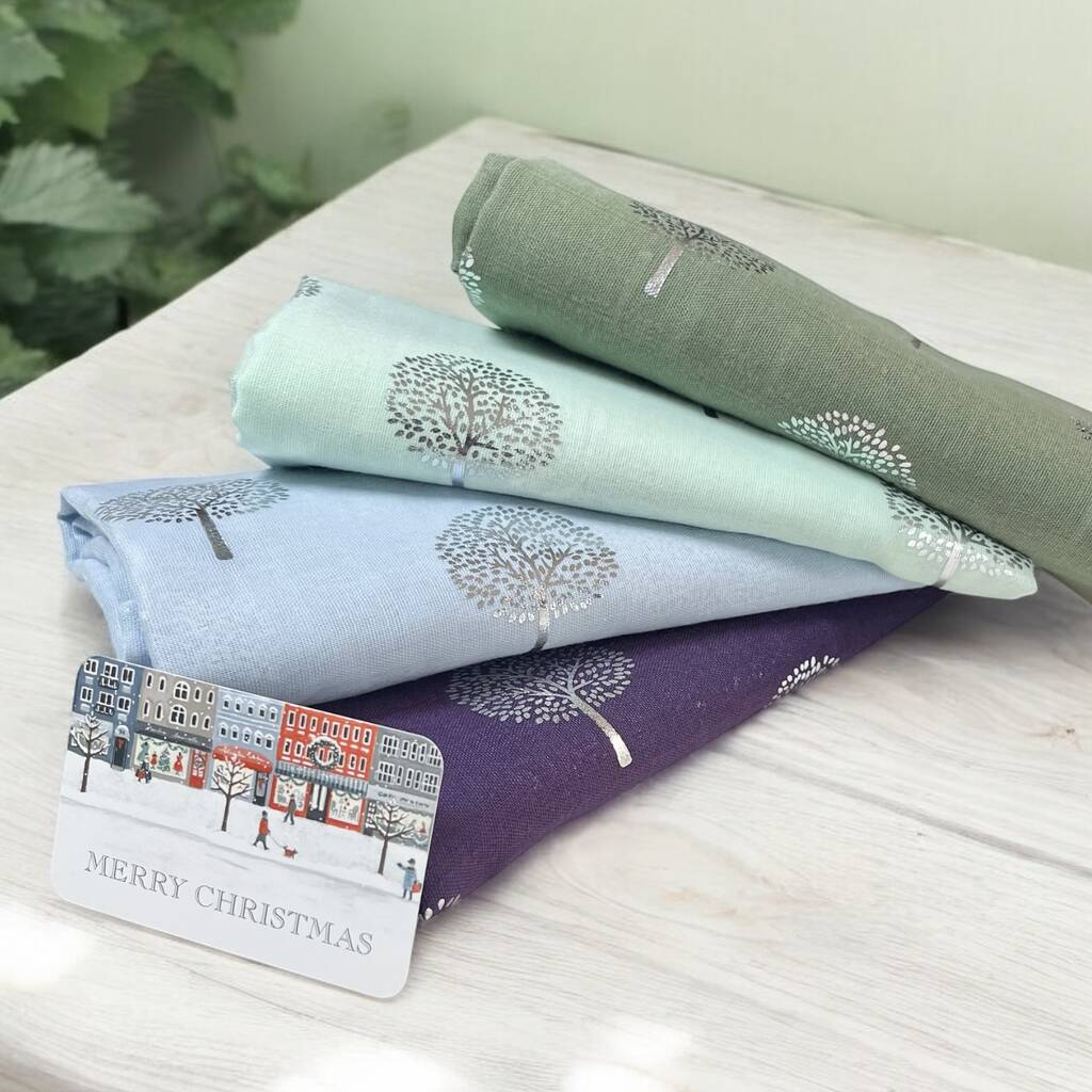 Metallic Silver Tree Of Life Cotton Scarf