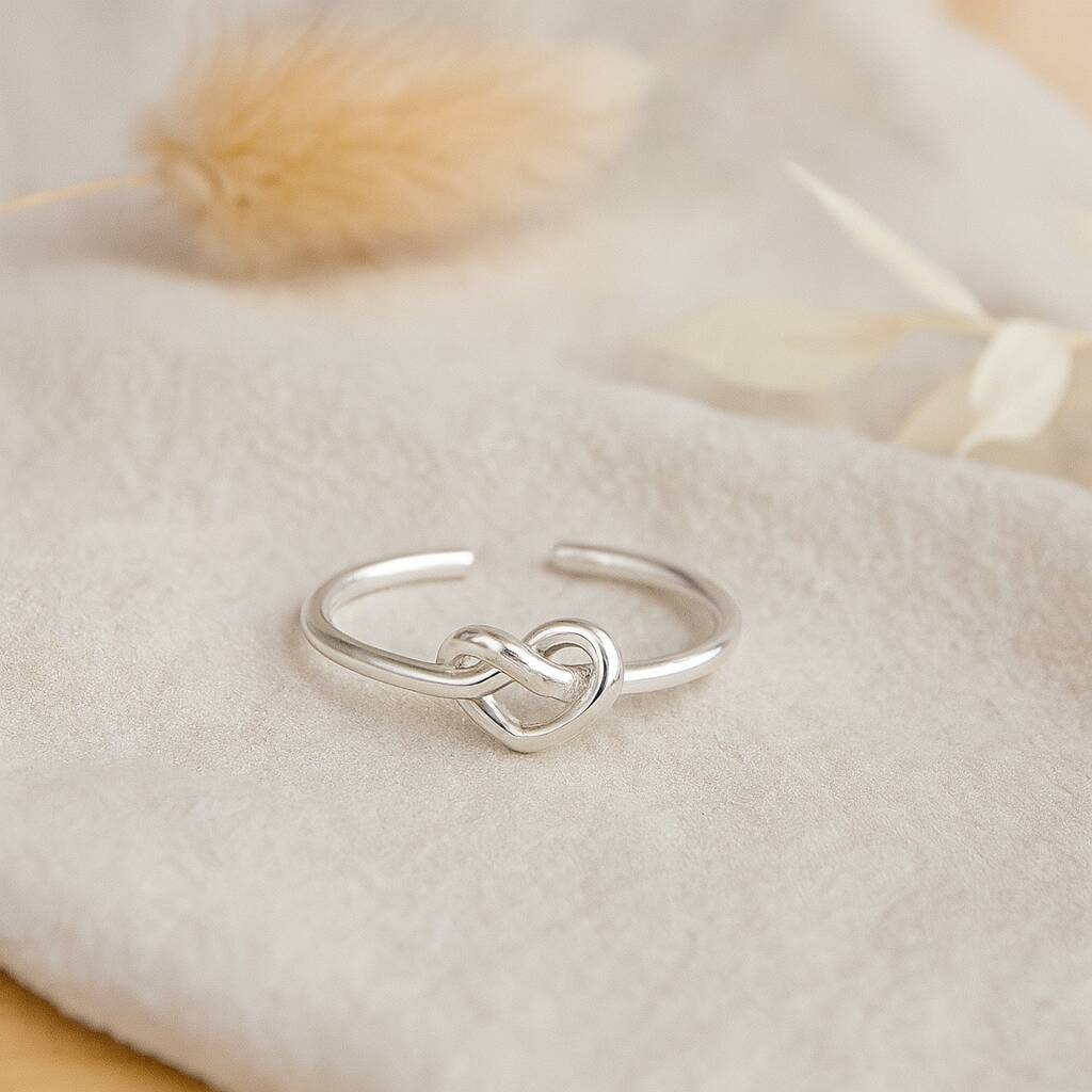 Sterling Silver Adjustable Heart Knot Ring