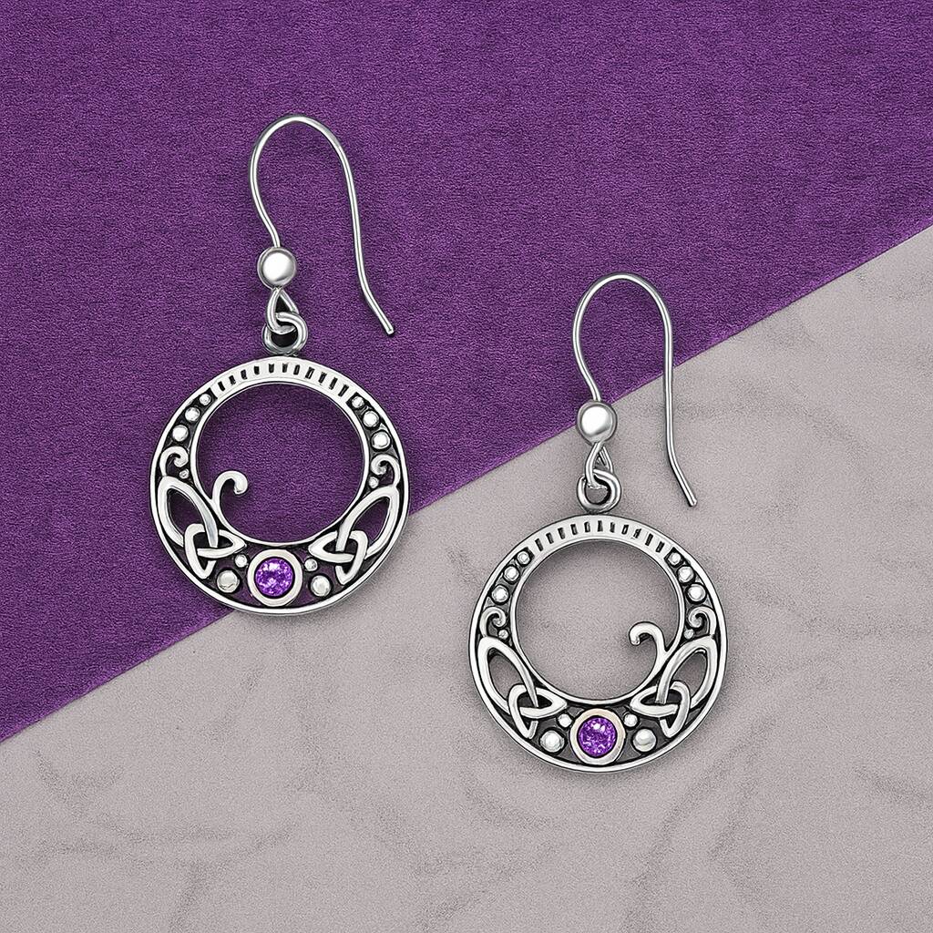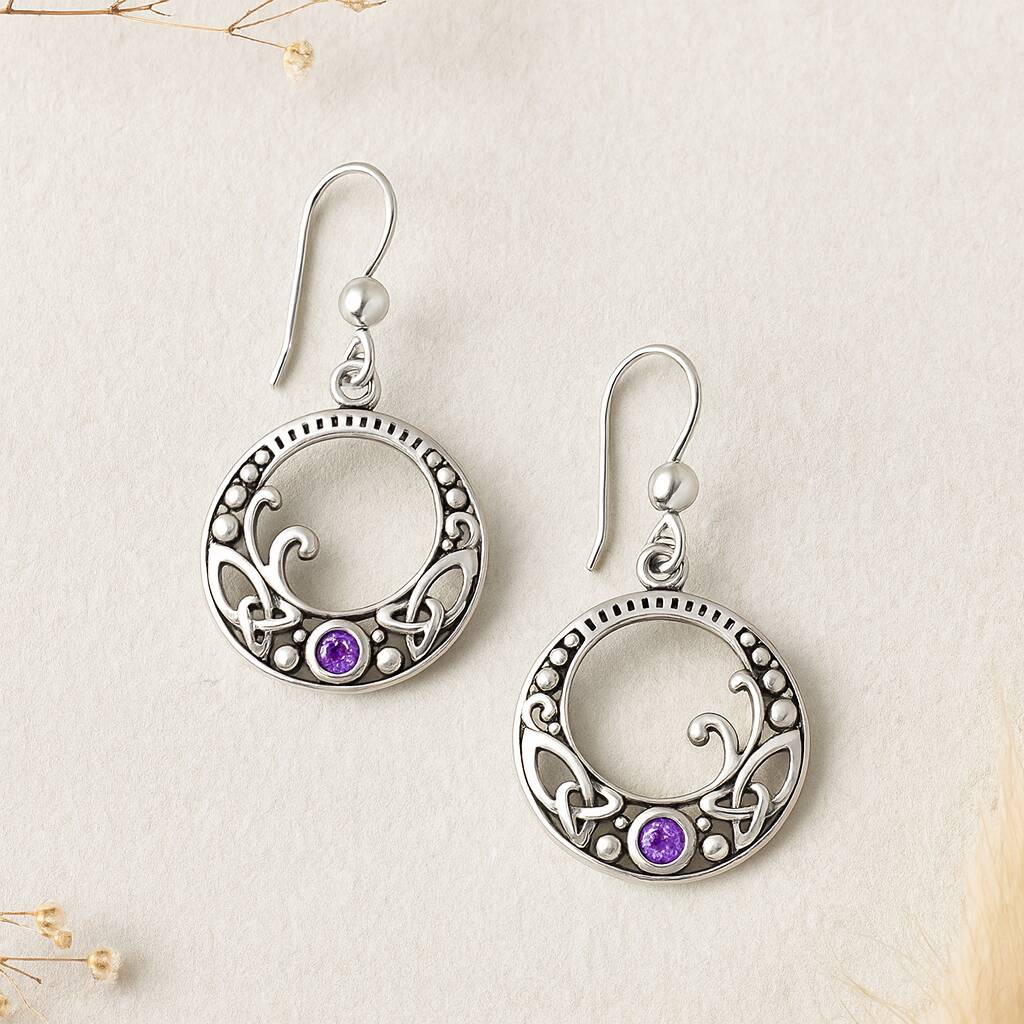 • Sterling Silver Celtic Knot Amethyst Earrings, thumbnail 1 of 7