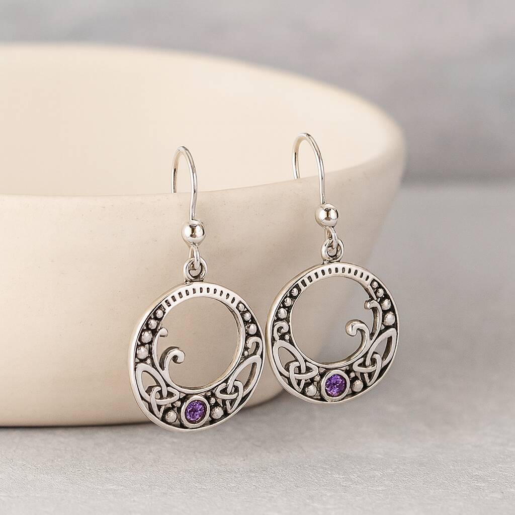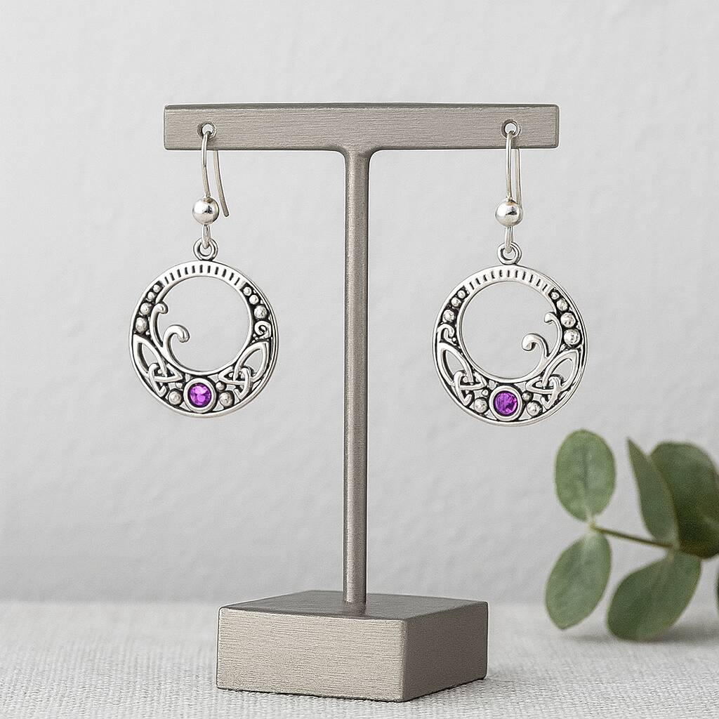 Sterling Silver Celtic Knot Amethyst Earrings, 1 of 7