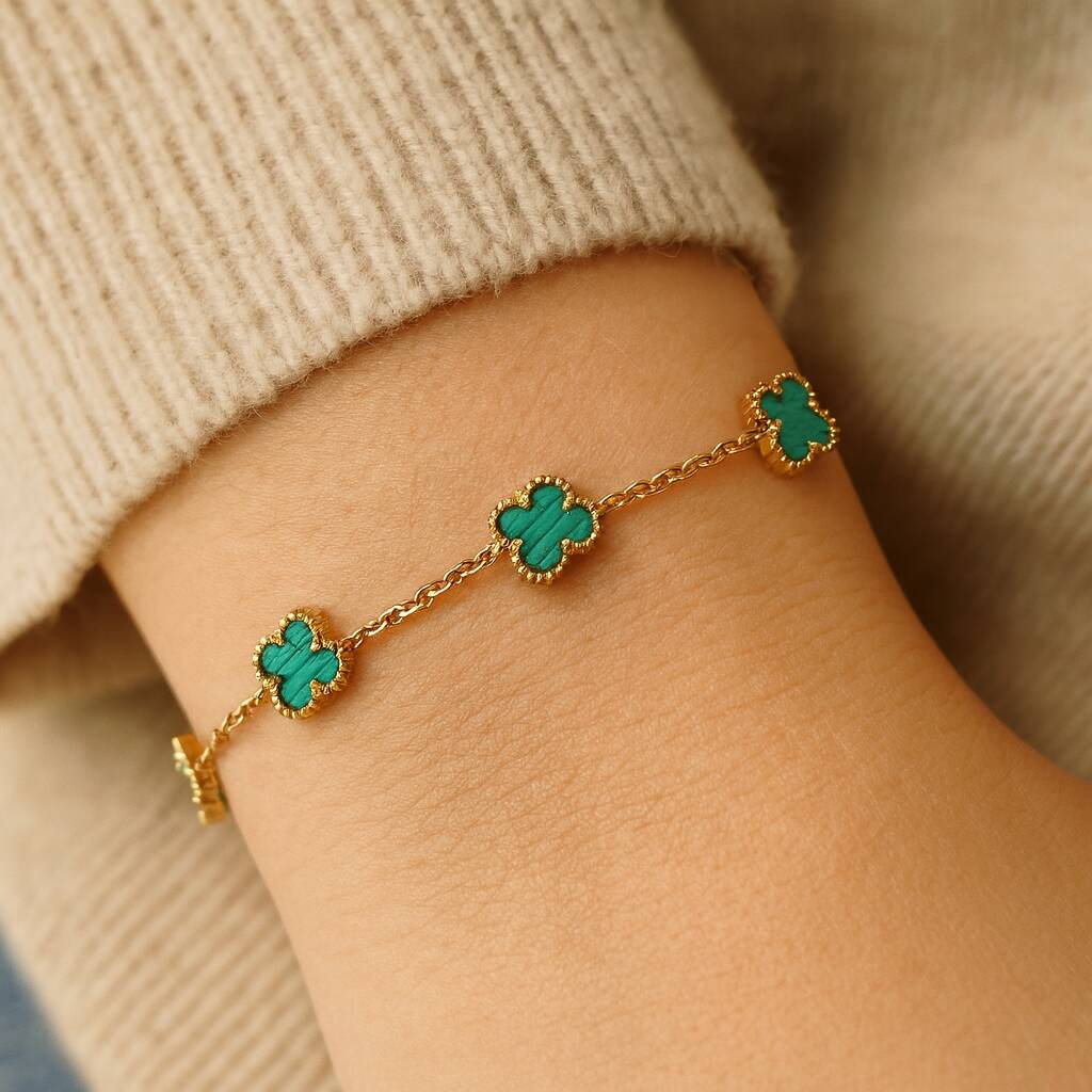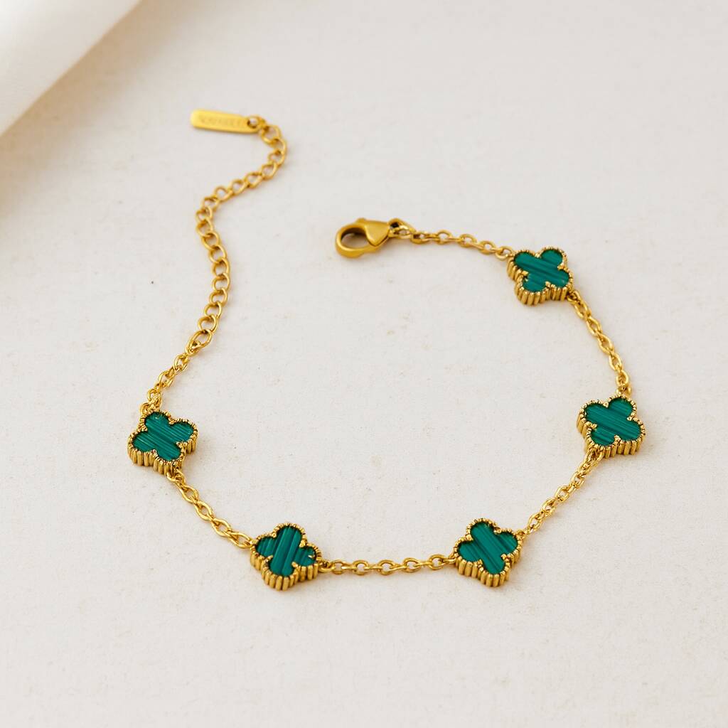 Gold And Green Tone Clover Motif Bracelet