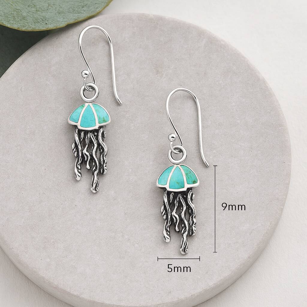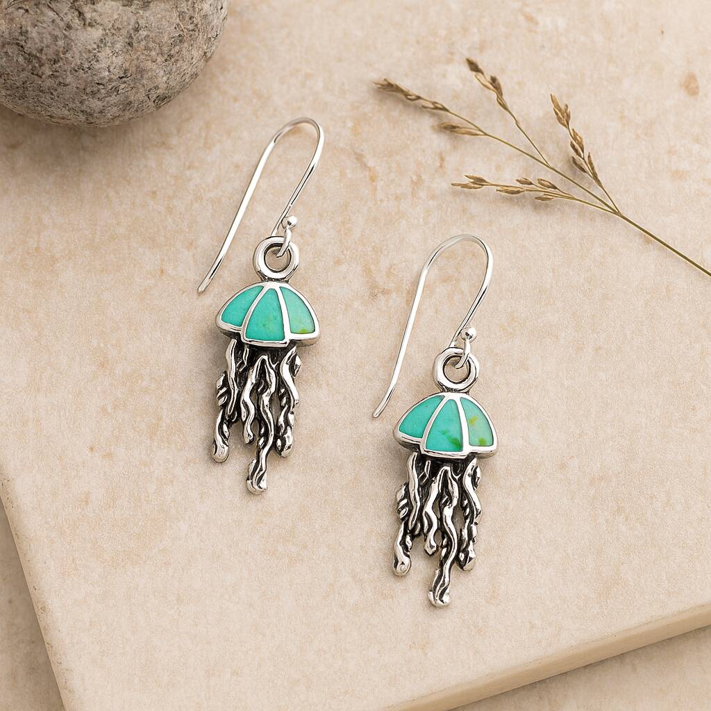 Turquoise Resin Sterling Silver Jellyfish Hook Earrings