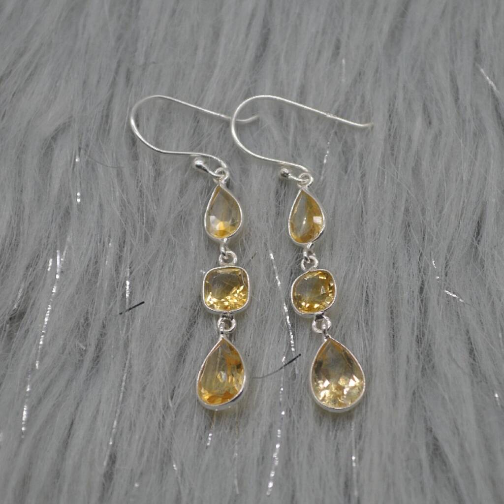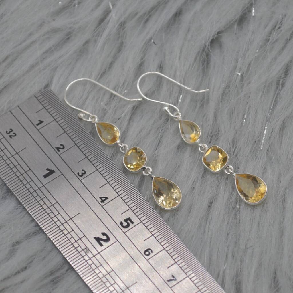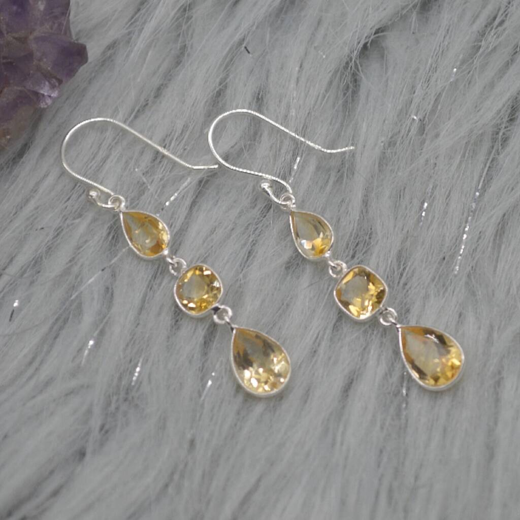 Citrine Teardrop Dangle Drop Earrings: 925 Silver