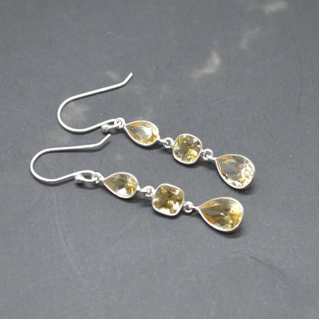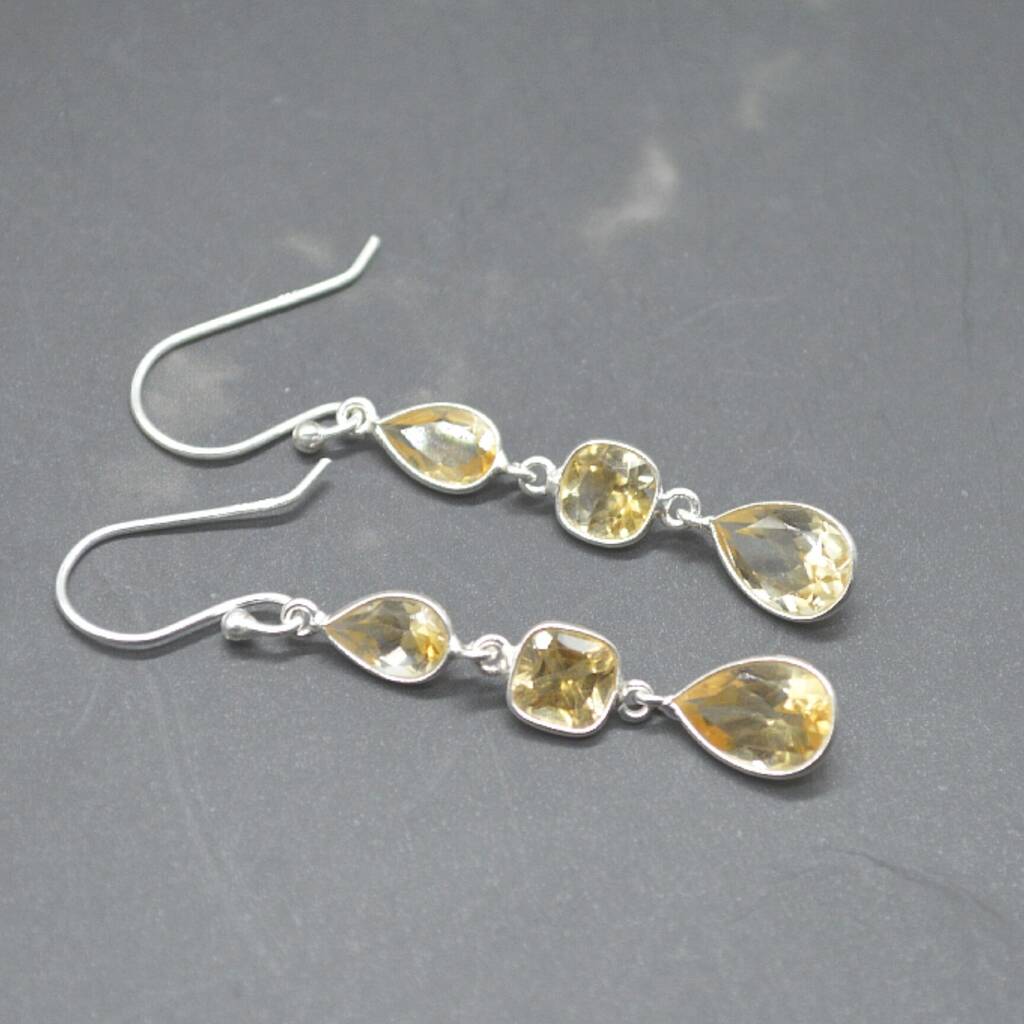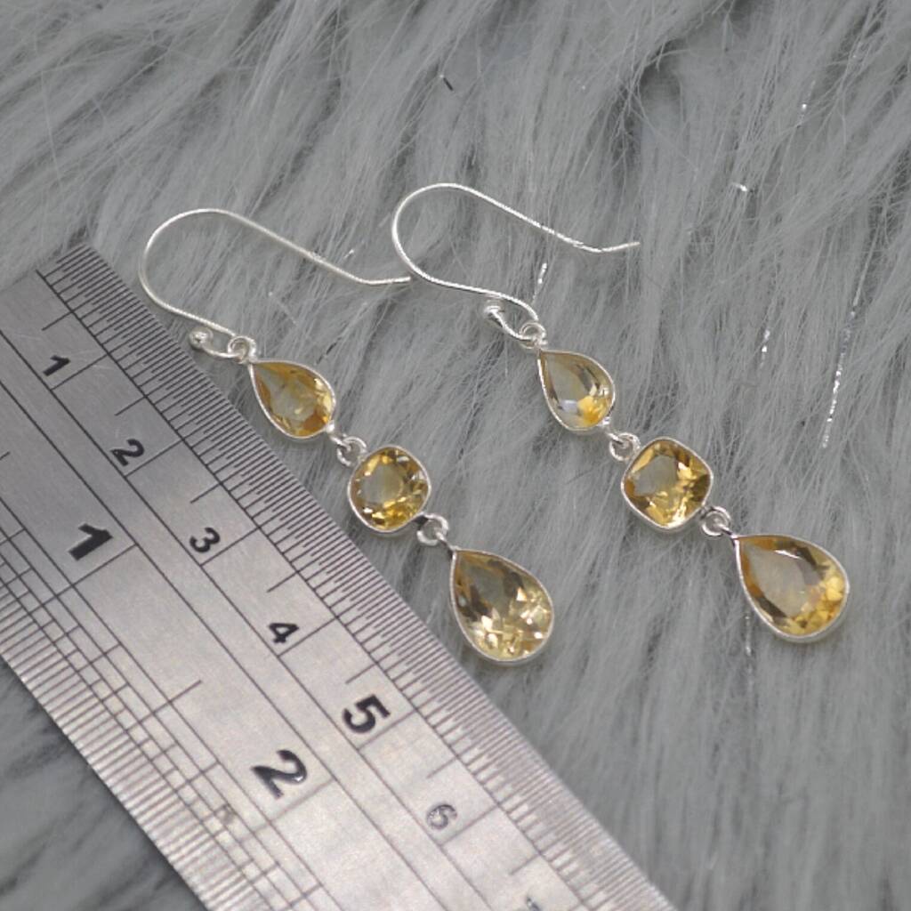 Citrine Teardrop Dangle Drop Earrings: 925 Silver