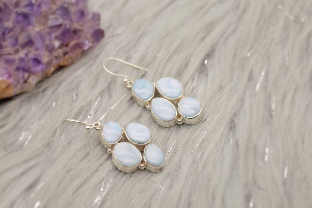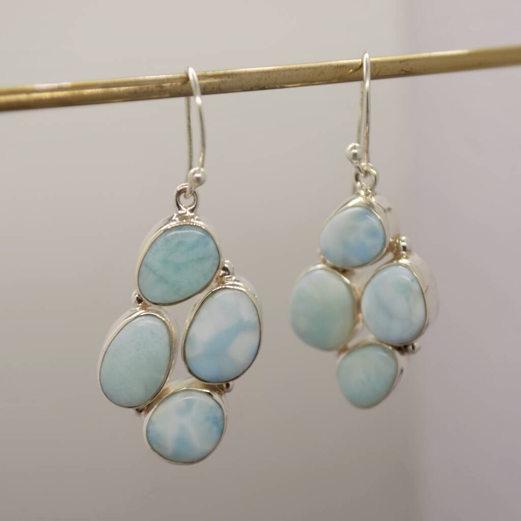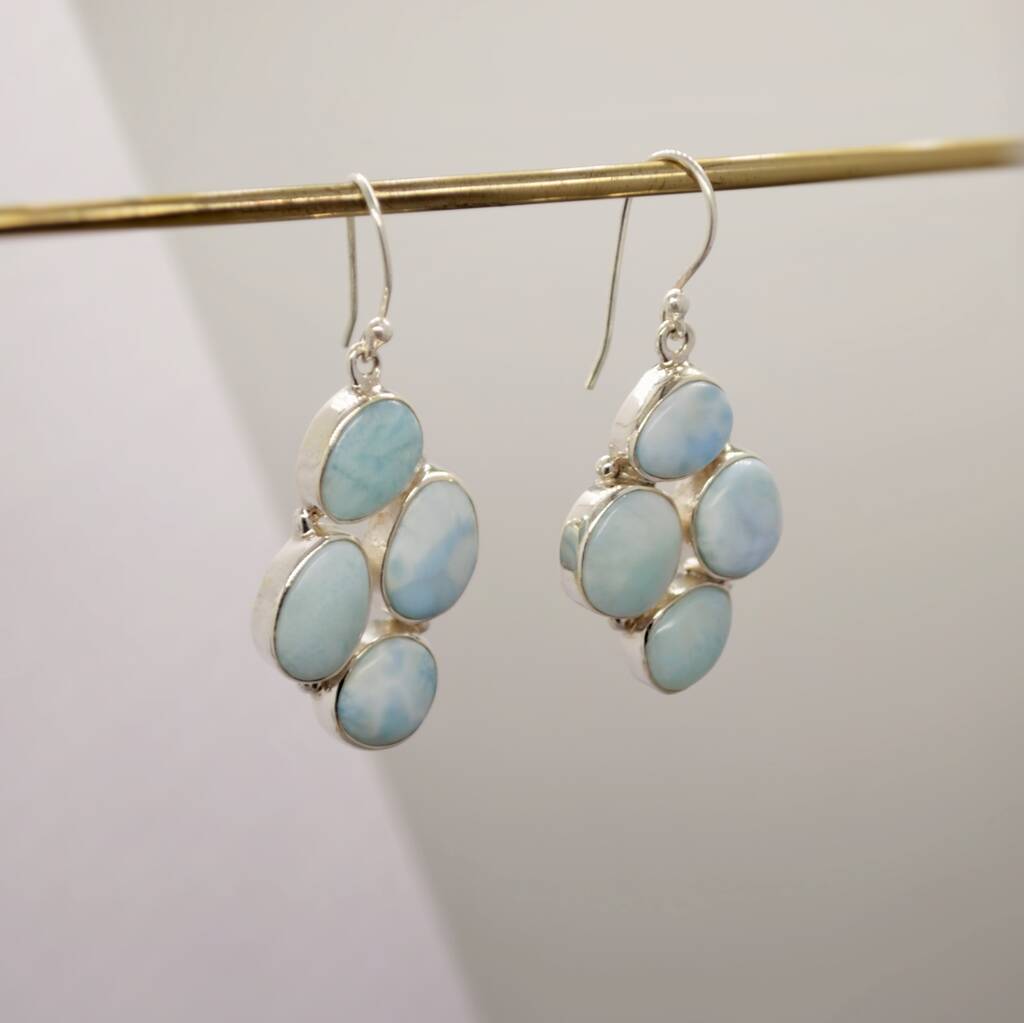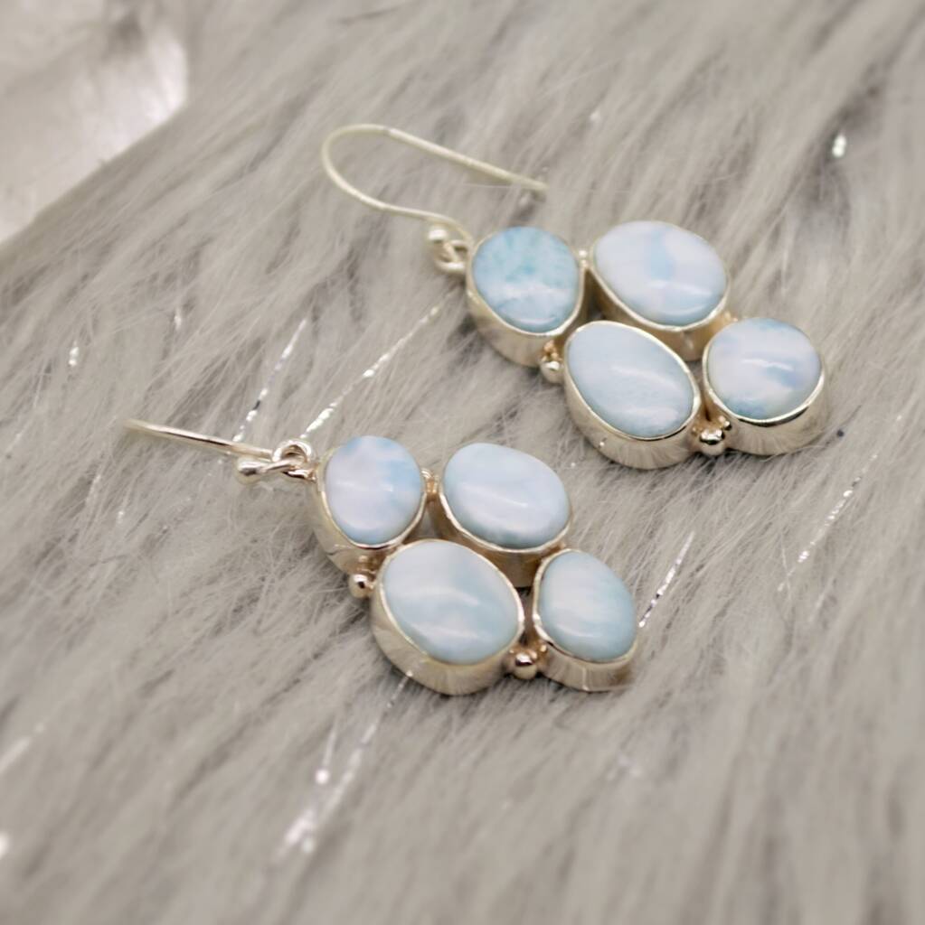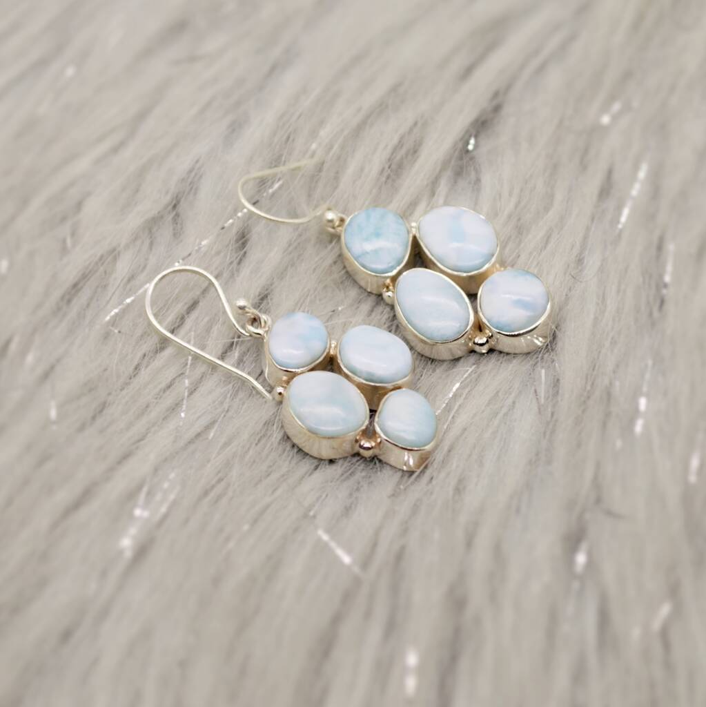 Larimar Drop Earrings: Sterling Silver Blue Gemstone