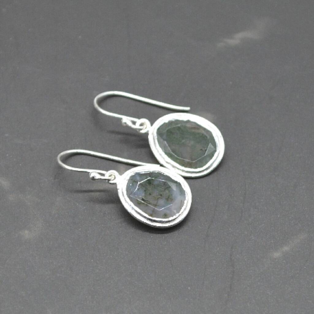 • Moss Agate Sterling Silver Earrings, thumbnail 8 of 8