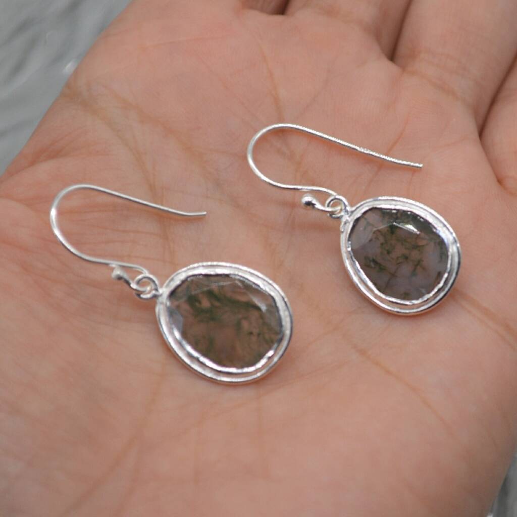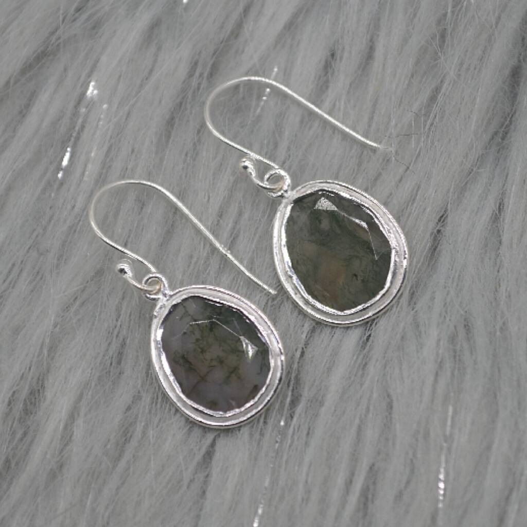 Moss Agate Sterling Silver Earrings, 1 of 8