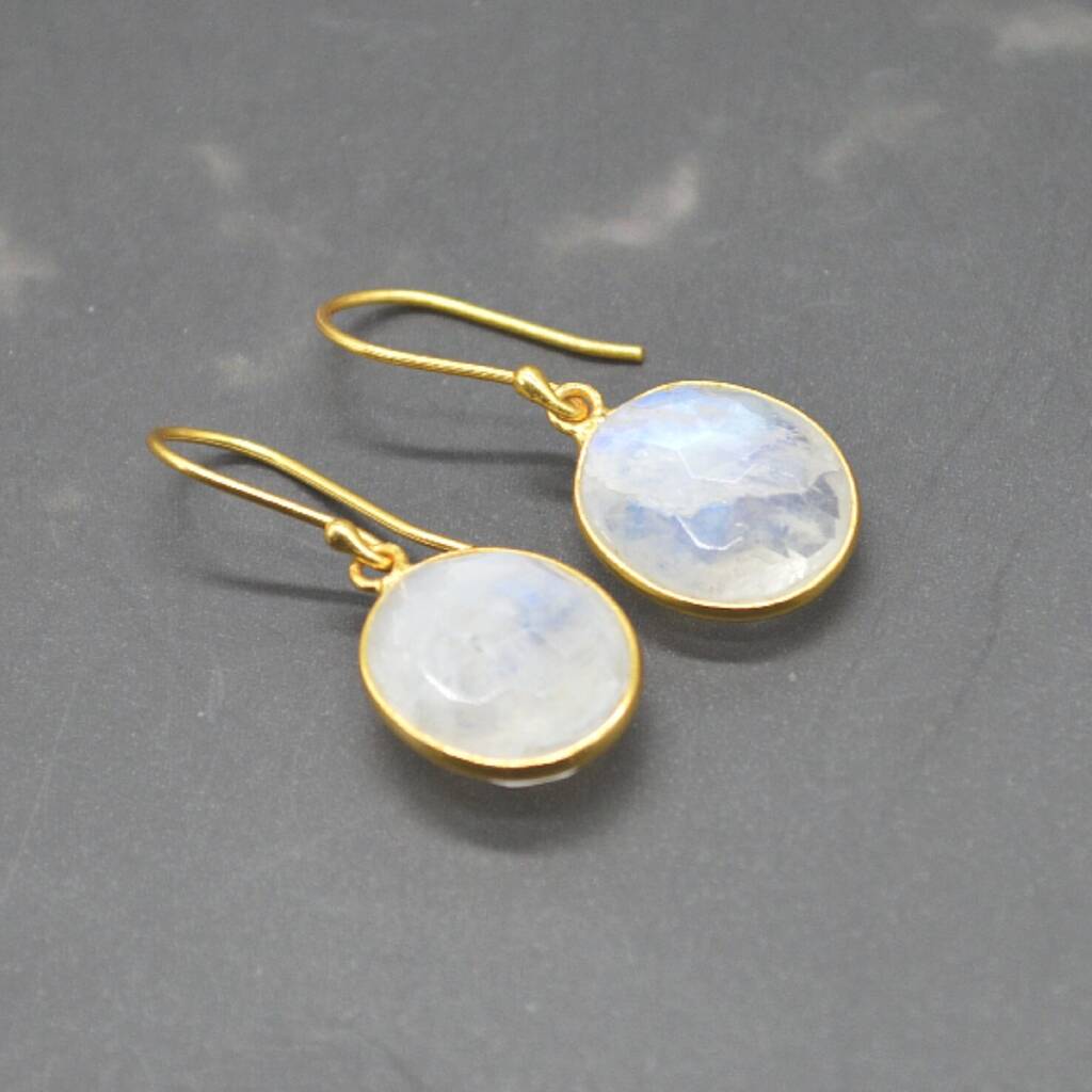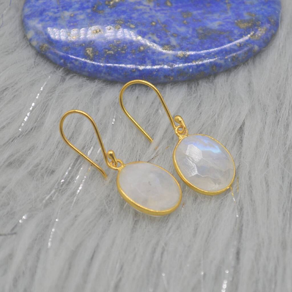 Rainbow Moonstone Gold Drop Earrings: June Birthstone