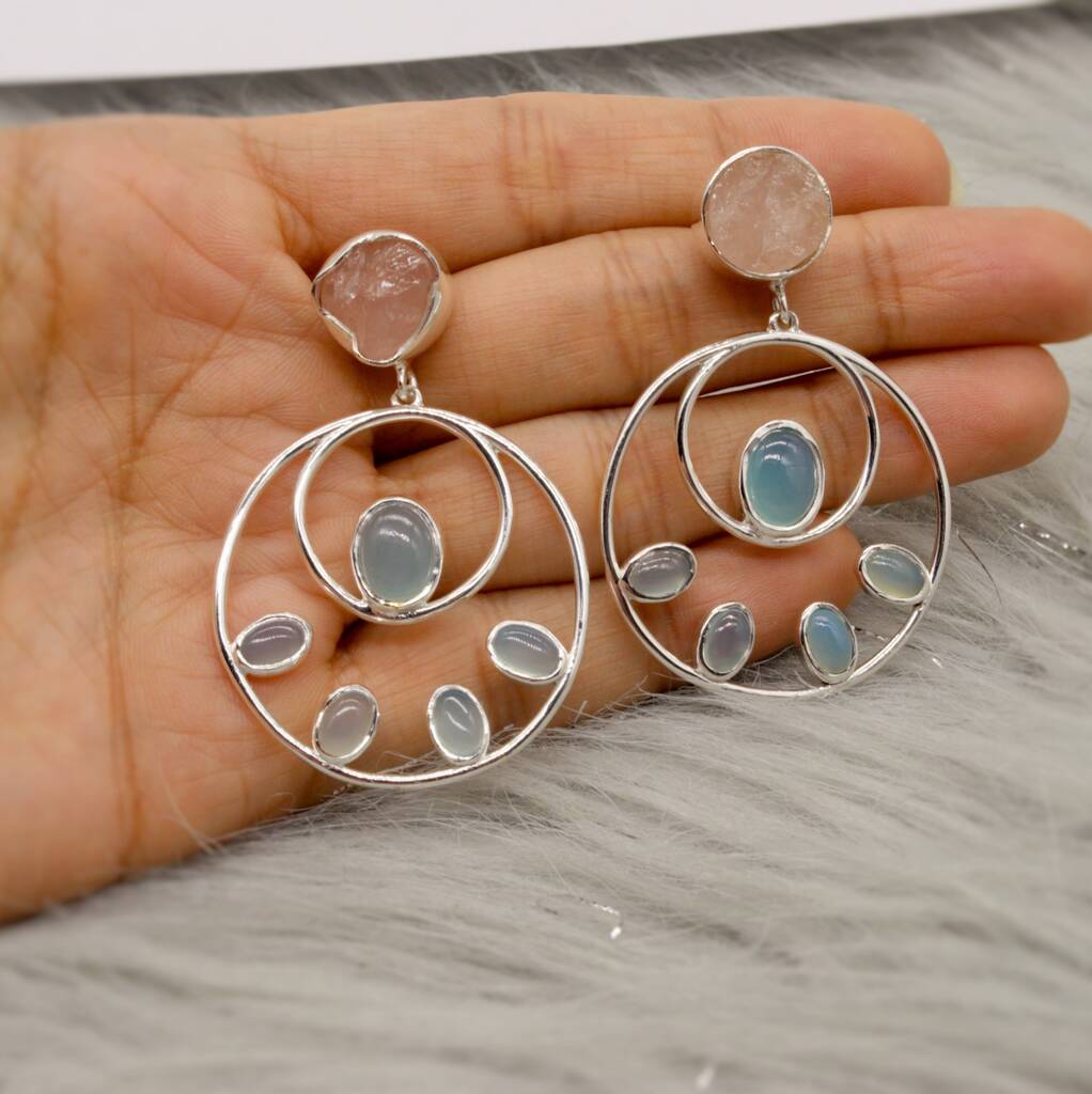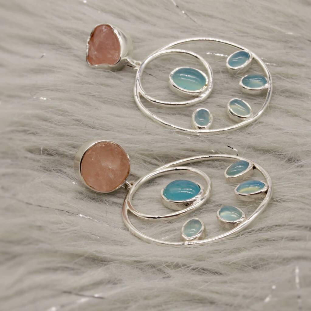 Rose Quartz Aqua Chalcedony Earrings, 1 of 5