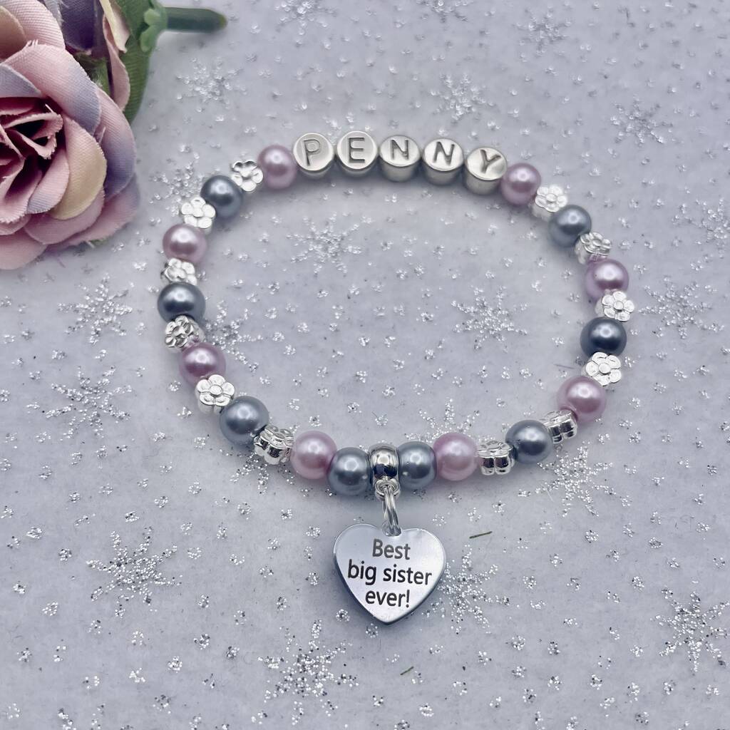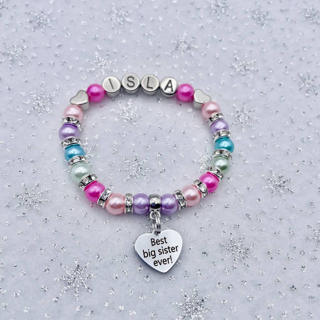 Personalised Best Big Sister Ever Charm Bracelet, Baby Shower Gift