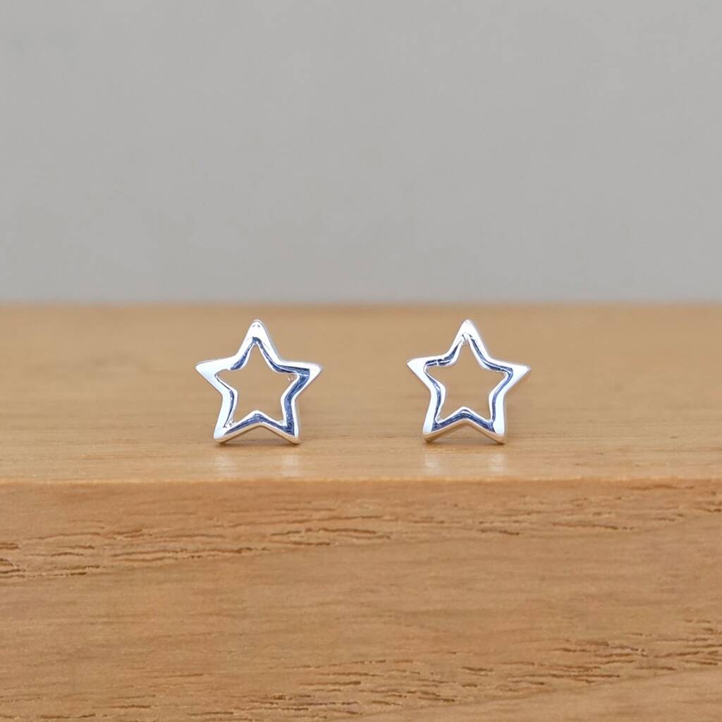 Sterling Silver Open Star Stud Earrings, 1 of 2
