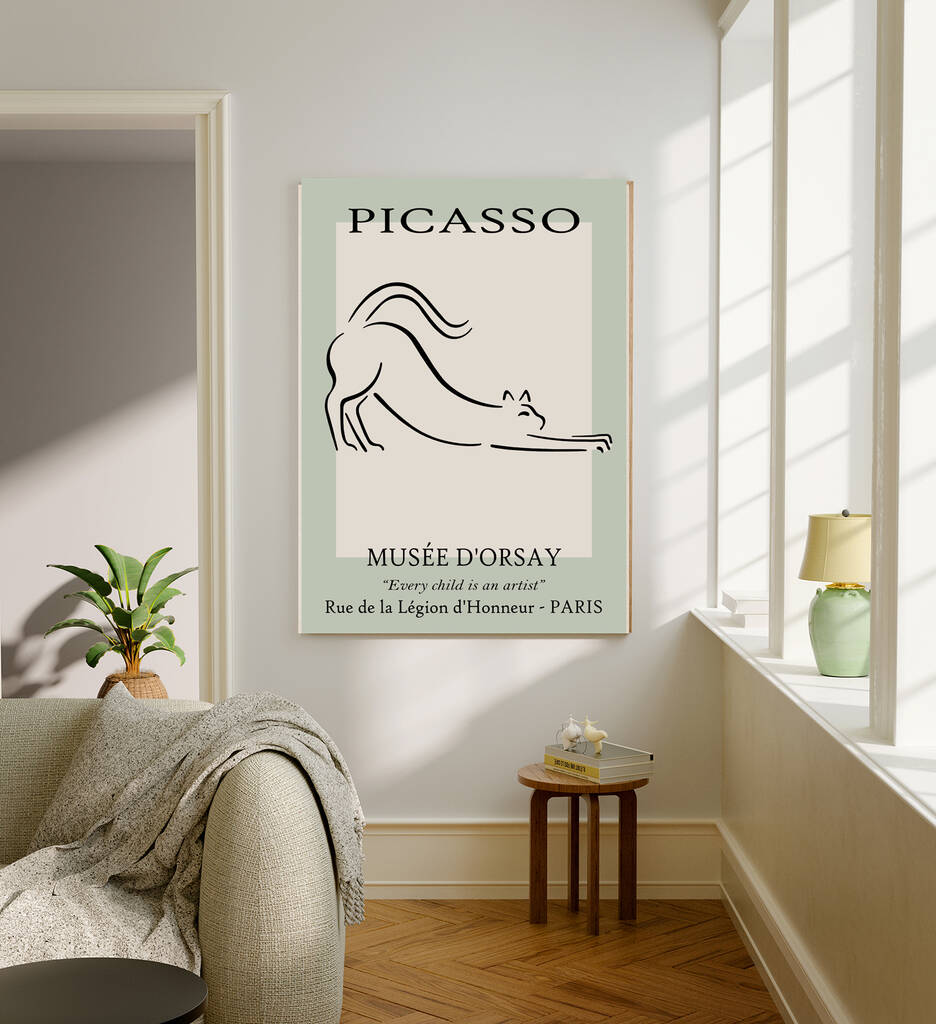 • Picasso Line Drawing Green Cat Art Print, thumbnail 5 of 5