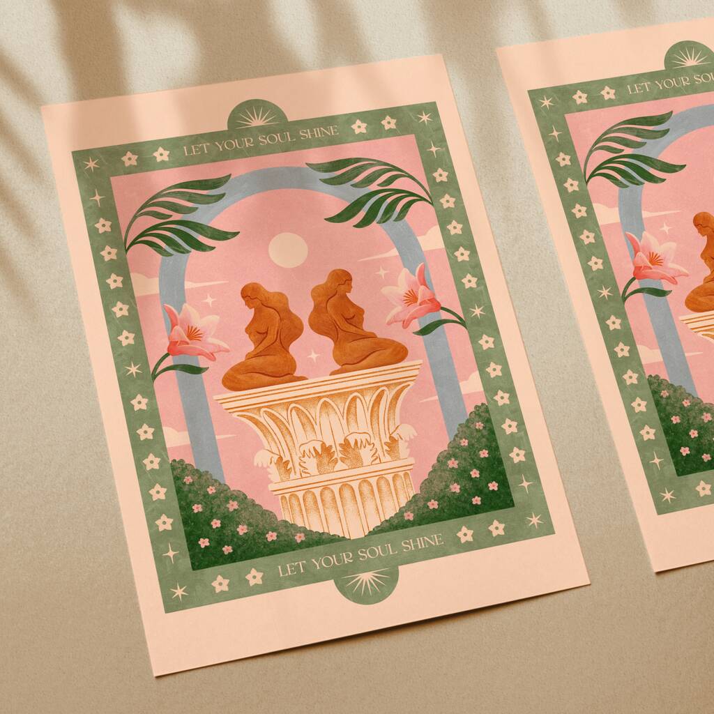 • Let Your Soul Shine, Bohemian Mindfulness Poster Botanical Art Print, thumbnail 3 of 3