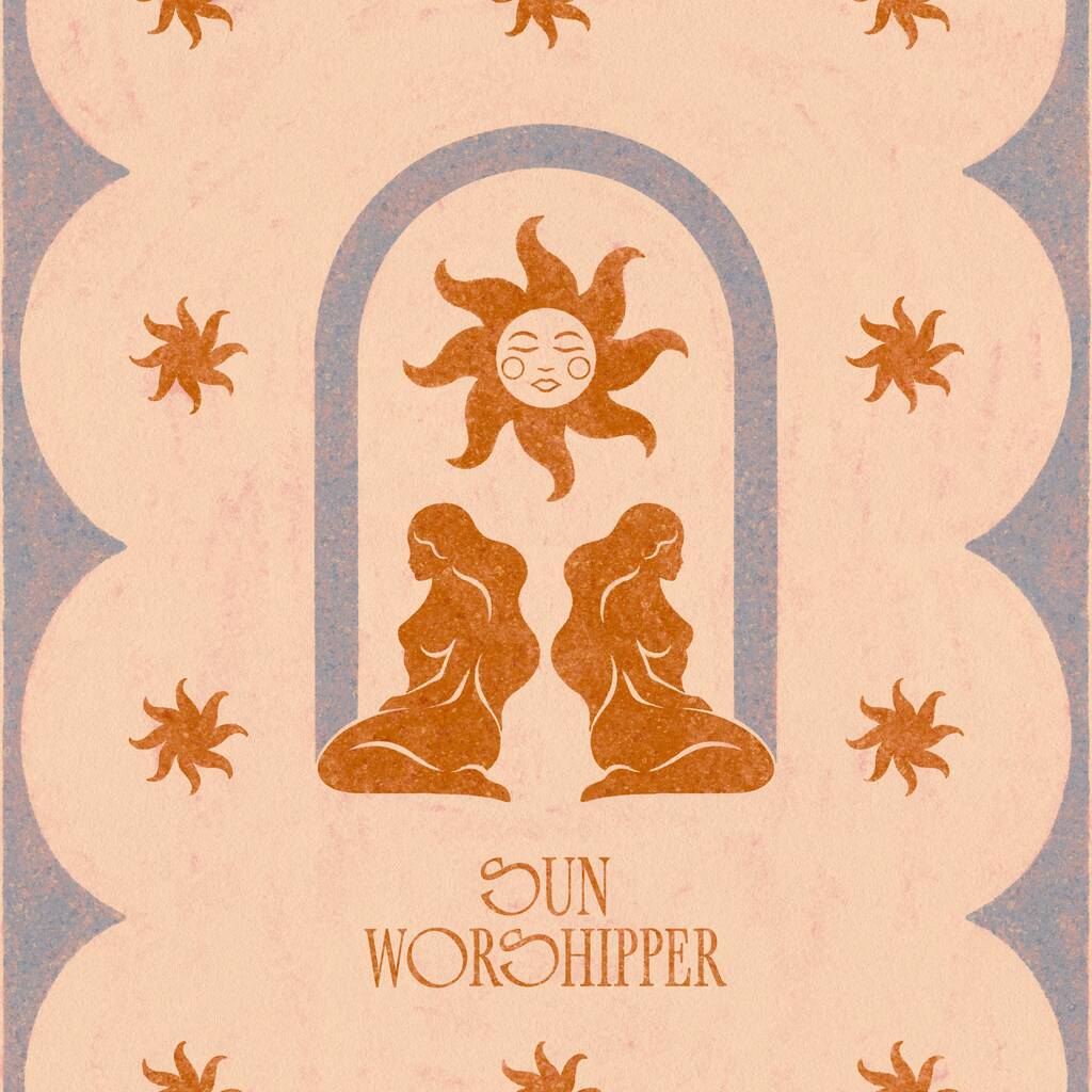Sun Worshipper, Blue, Bohemian Celestial Sun Art Poster