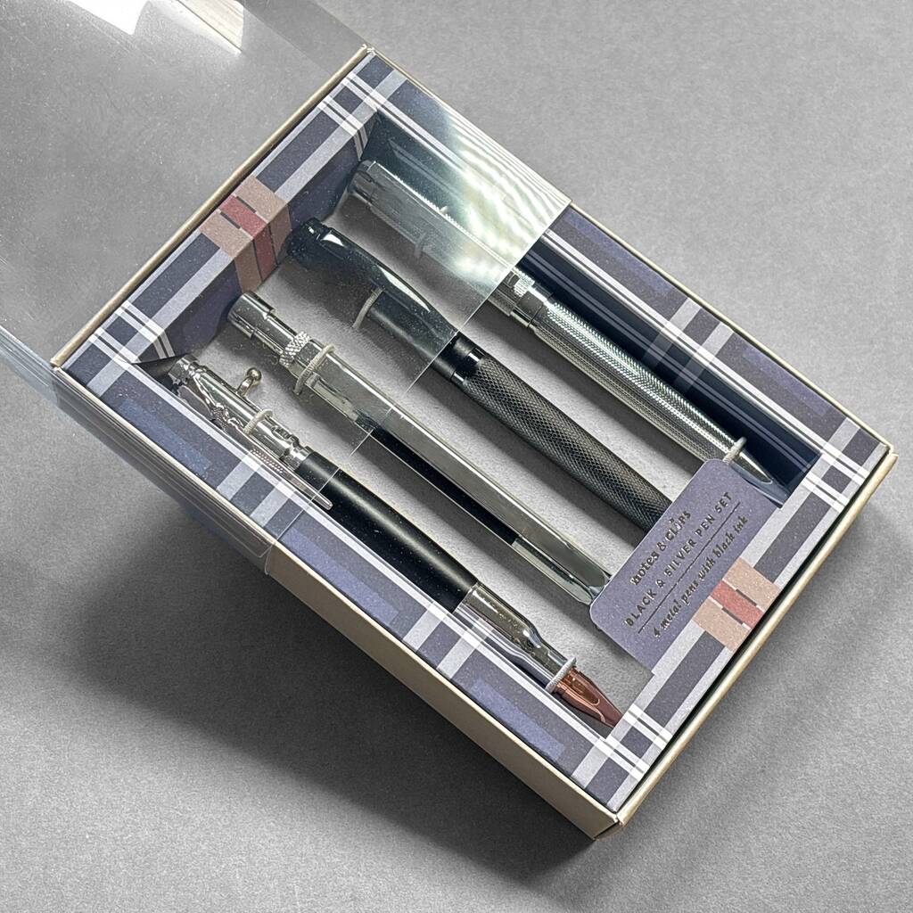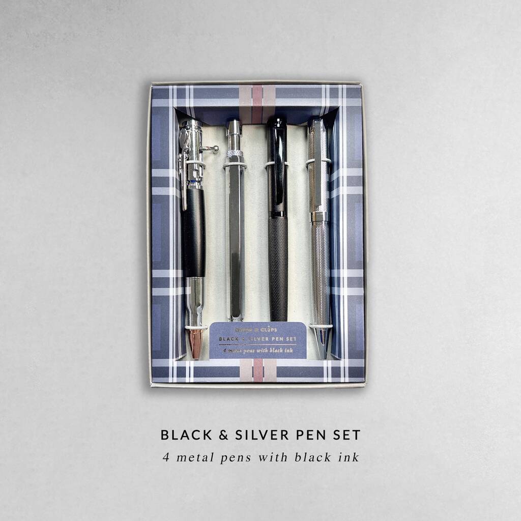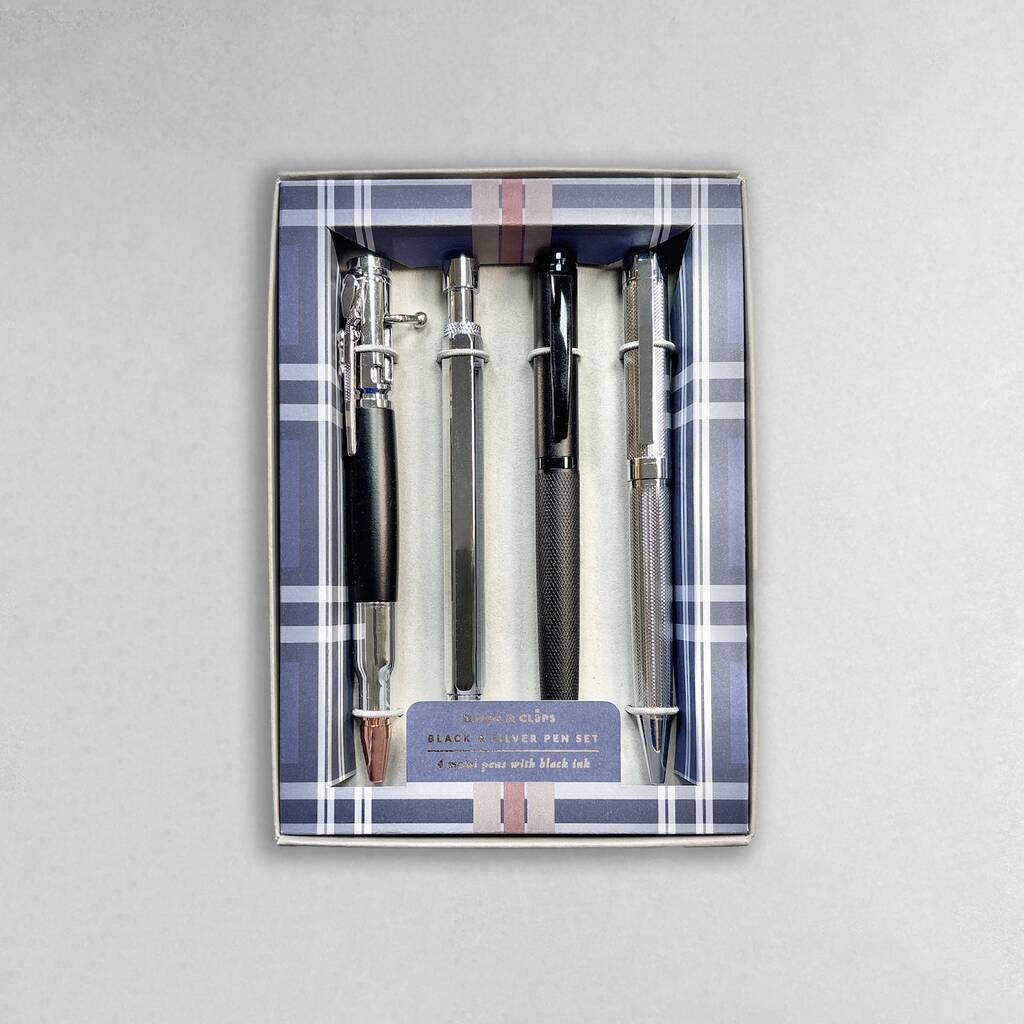 Black And Silver Metal Four Piece Pen Gift Set, 1 of 7