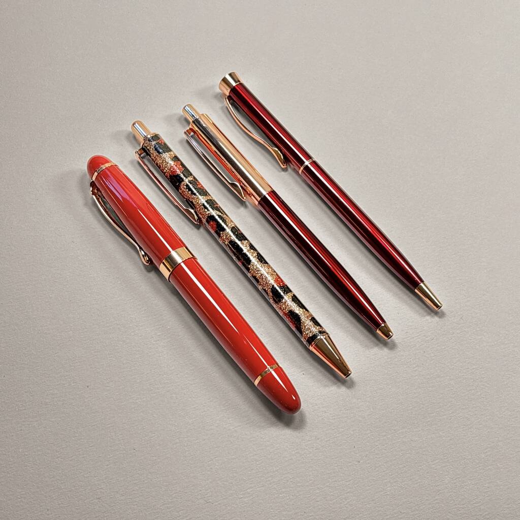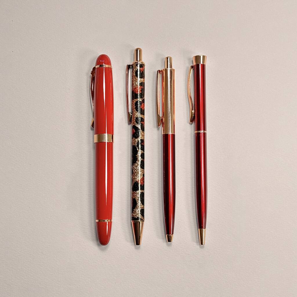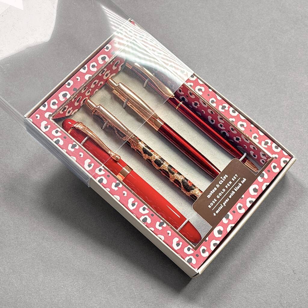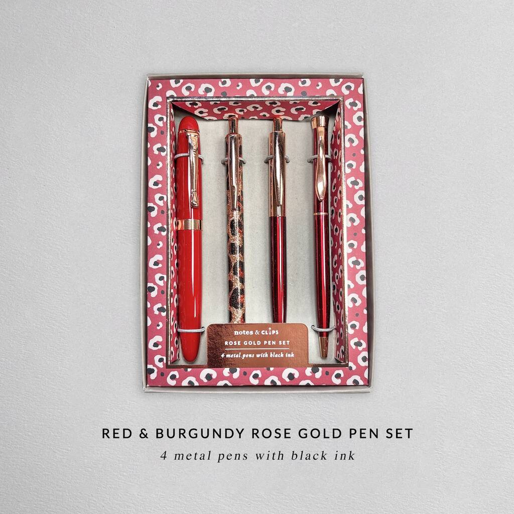 Red And Burgundy Rose Gold Four Piece Pen Gift Set