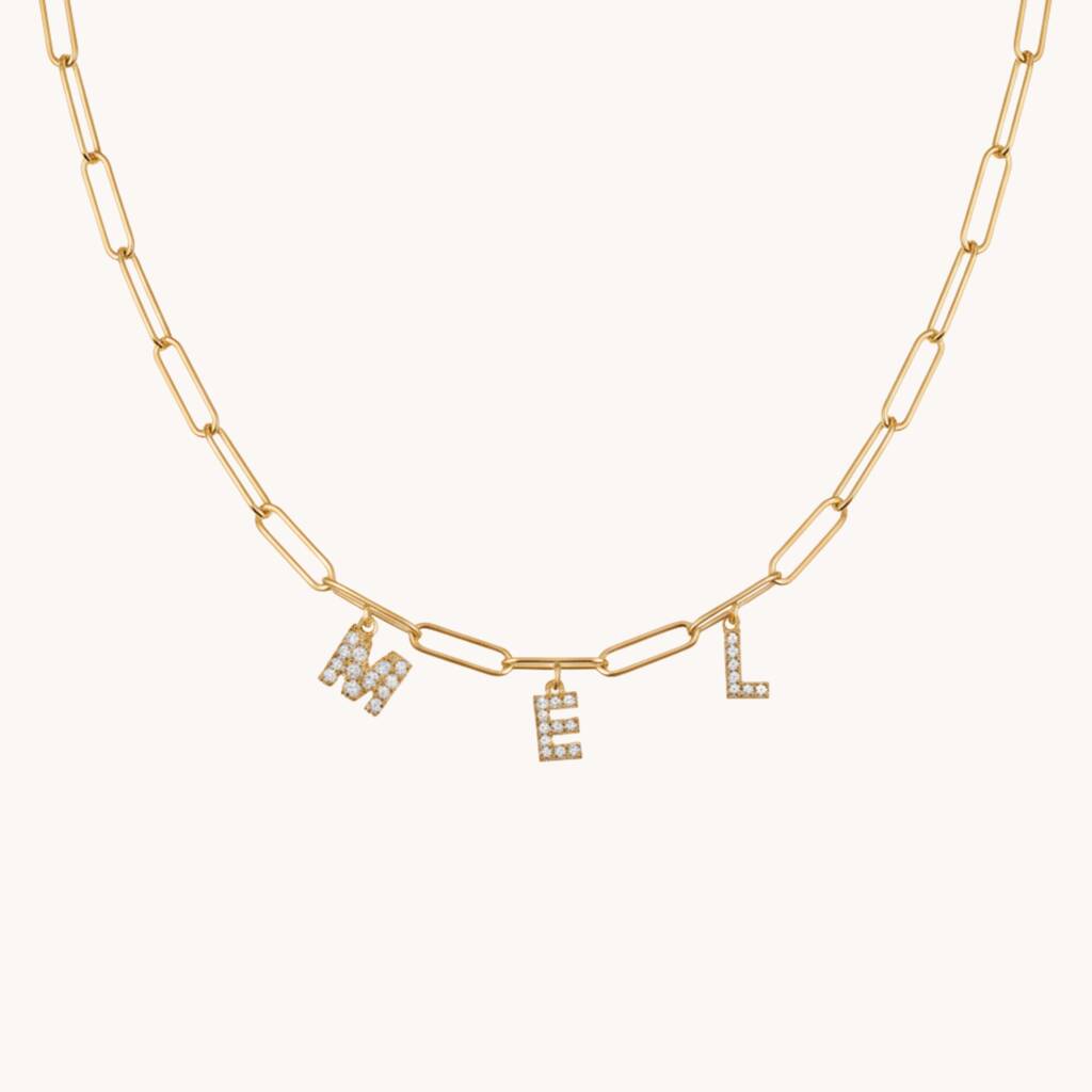 Charm Builder™ Gold Paperclip Crystal Initial Name Necklace