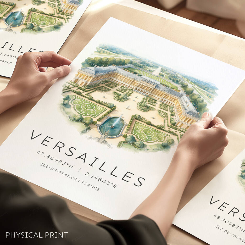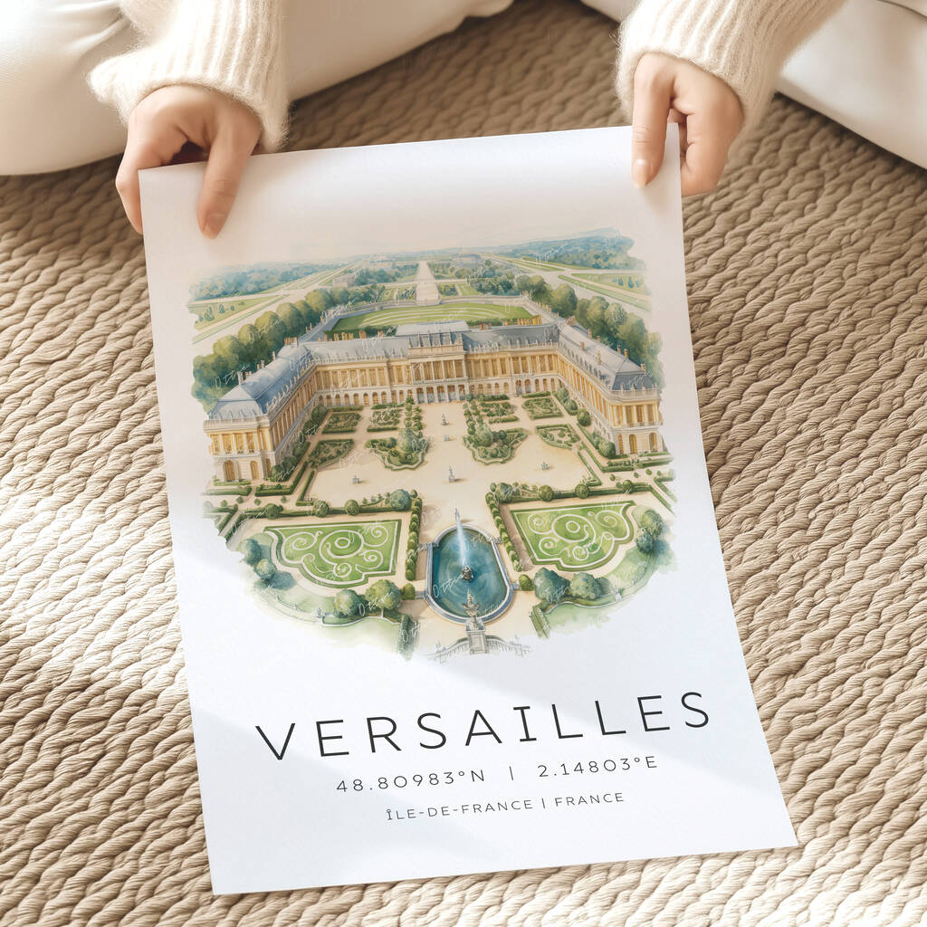 Watercolour travel print of Versailles, perfect for wedding and birthday gifts and for creating that perfect photo gallery of all your travels.