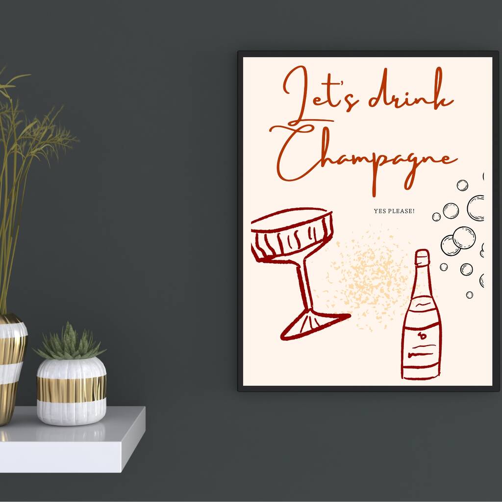 A4 Champagne Print Let's Drink Champagne, 1 of 5