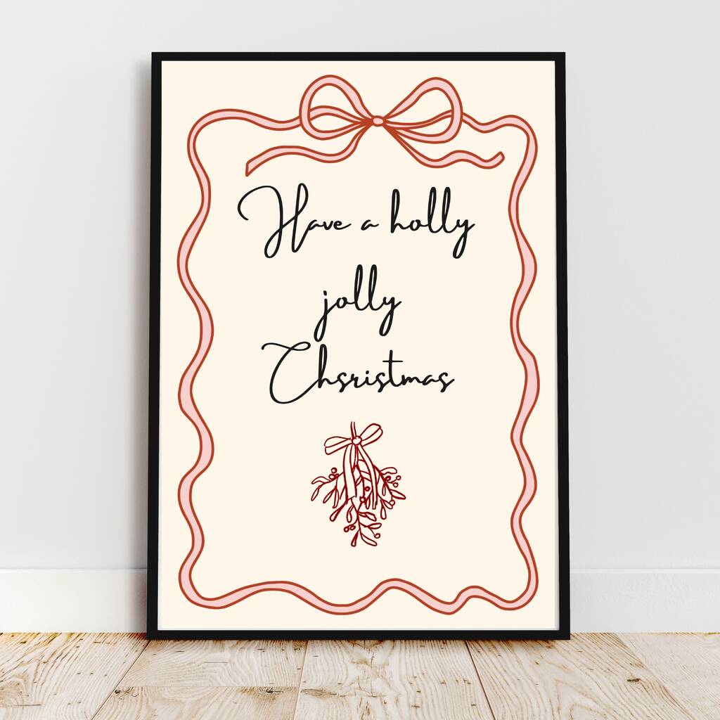 A4 Christmas Art Print, Have A Holly, Jolly Christmas