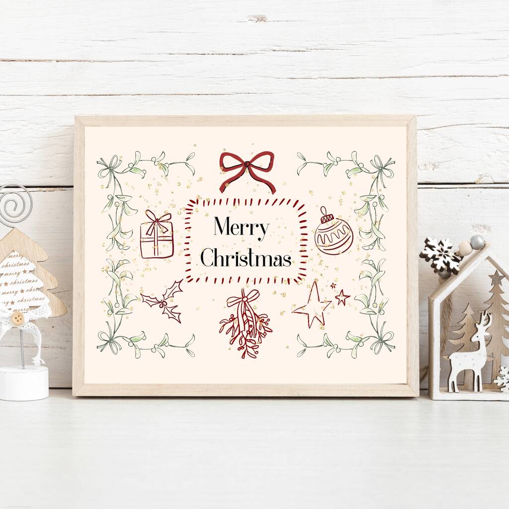 A4 Christmas Art Print Merry Christmas, Wall Art, Christmas Gift, Christmas Print
