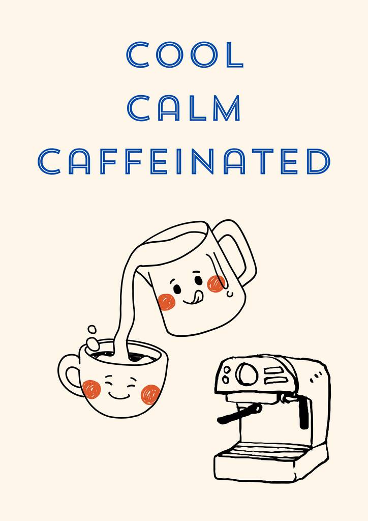 A4 Coffee Print Cool, Calm Caffeinated With Coffee Machine