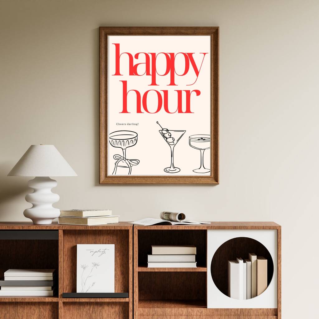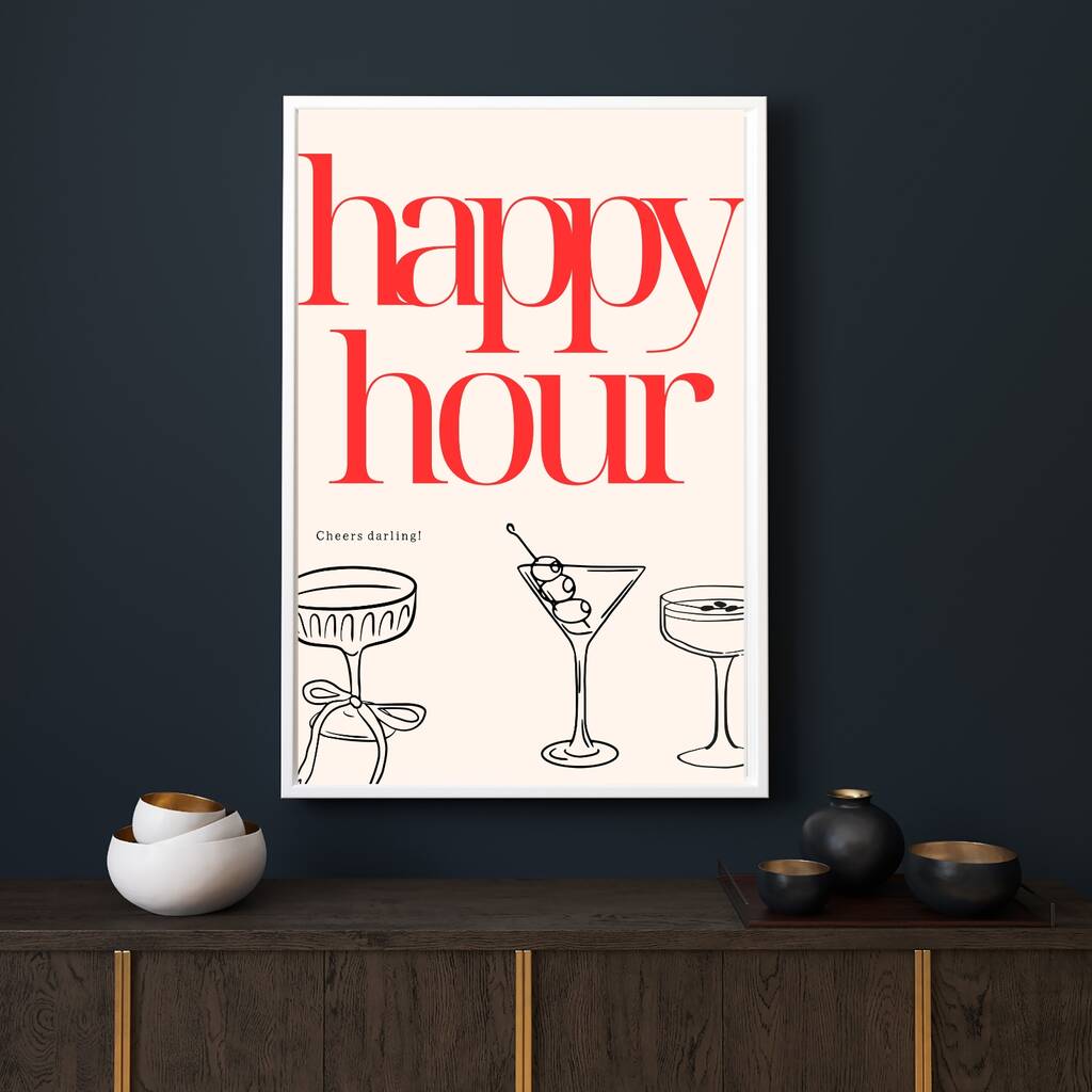 A4 Food And Drink Print, Happy Hour, Cheers Darling Red