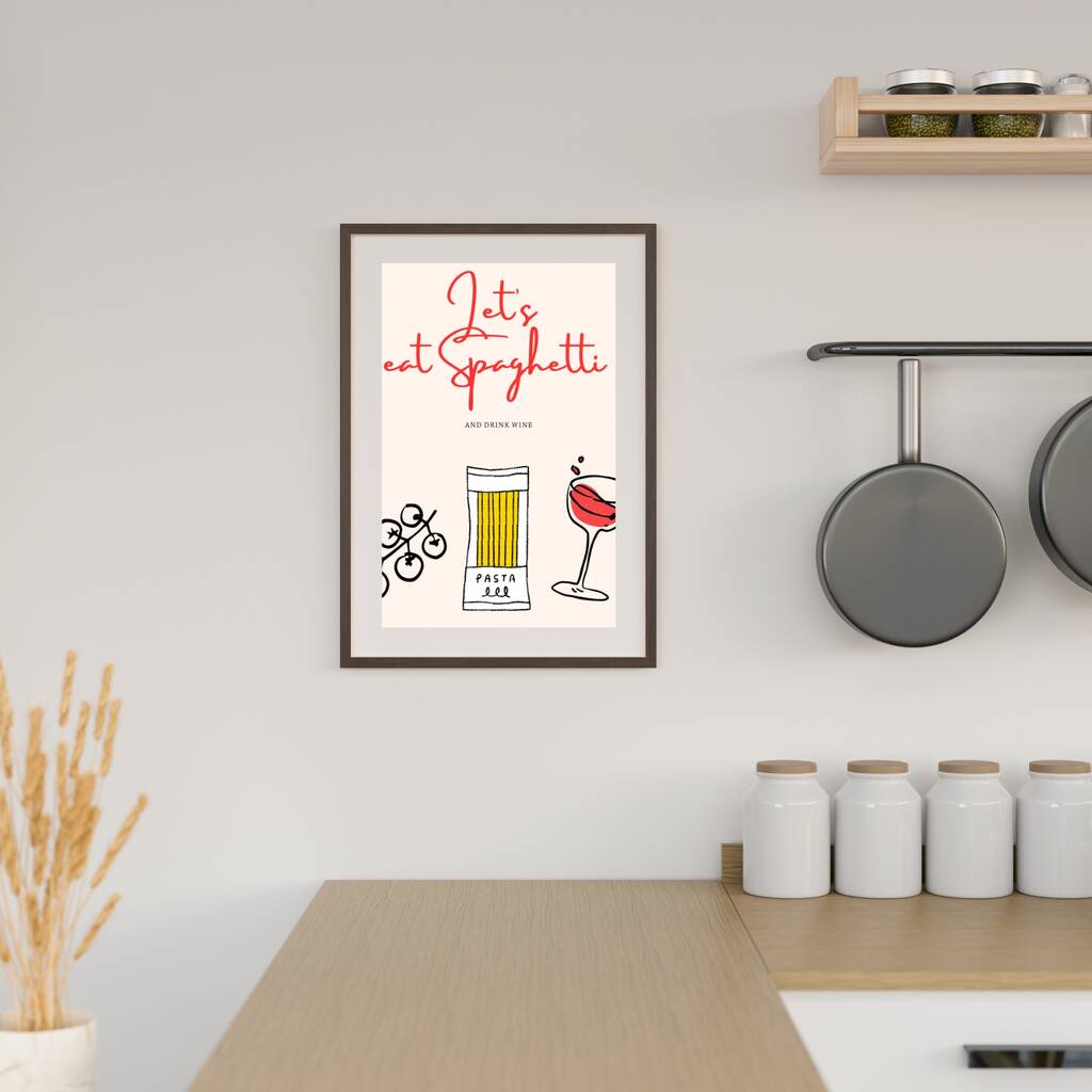 • A4 Food And Wine Print Let's Eat Spaghetti And Drink Wine, thumbnail 5 of 5