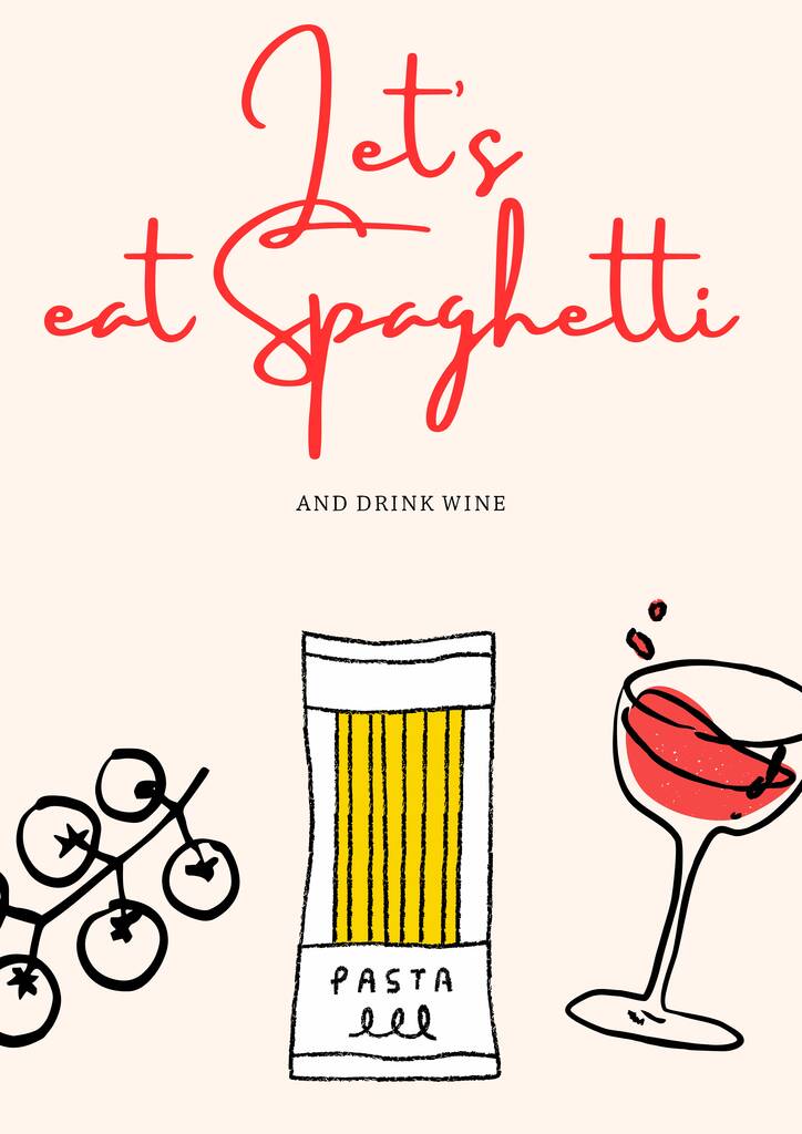 A4 Food And Wine Print Let's Eat Spaghetti And Drink Wine, 1 of 5