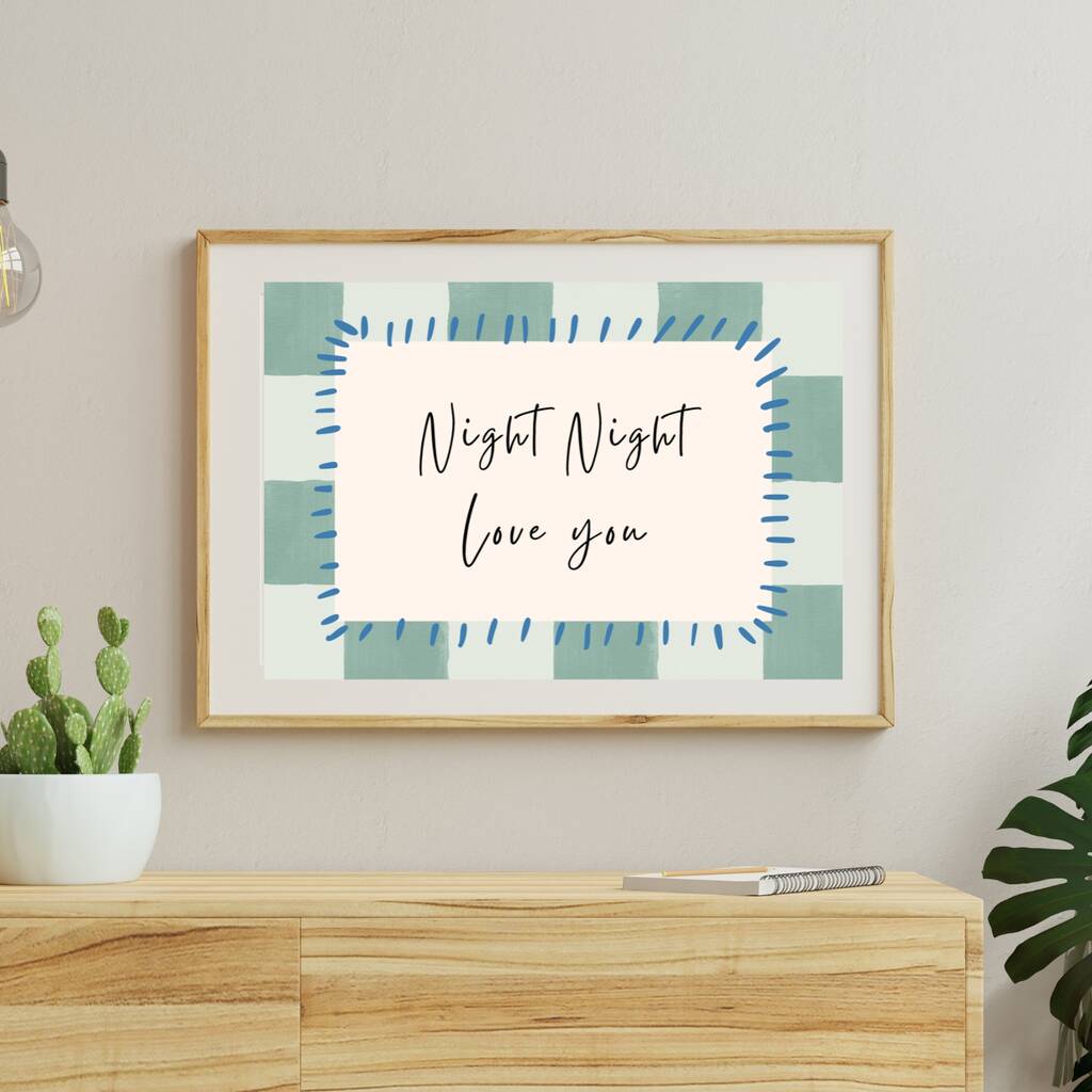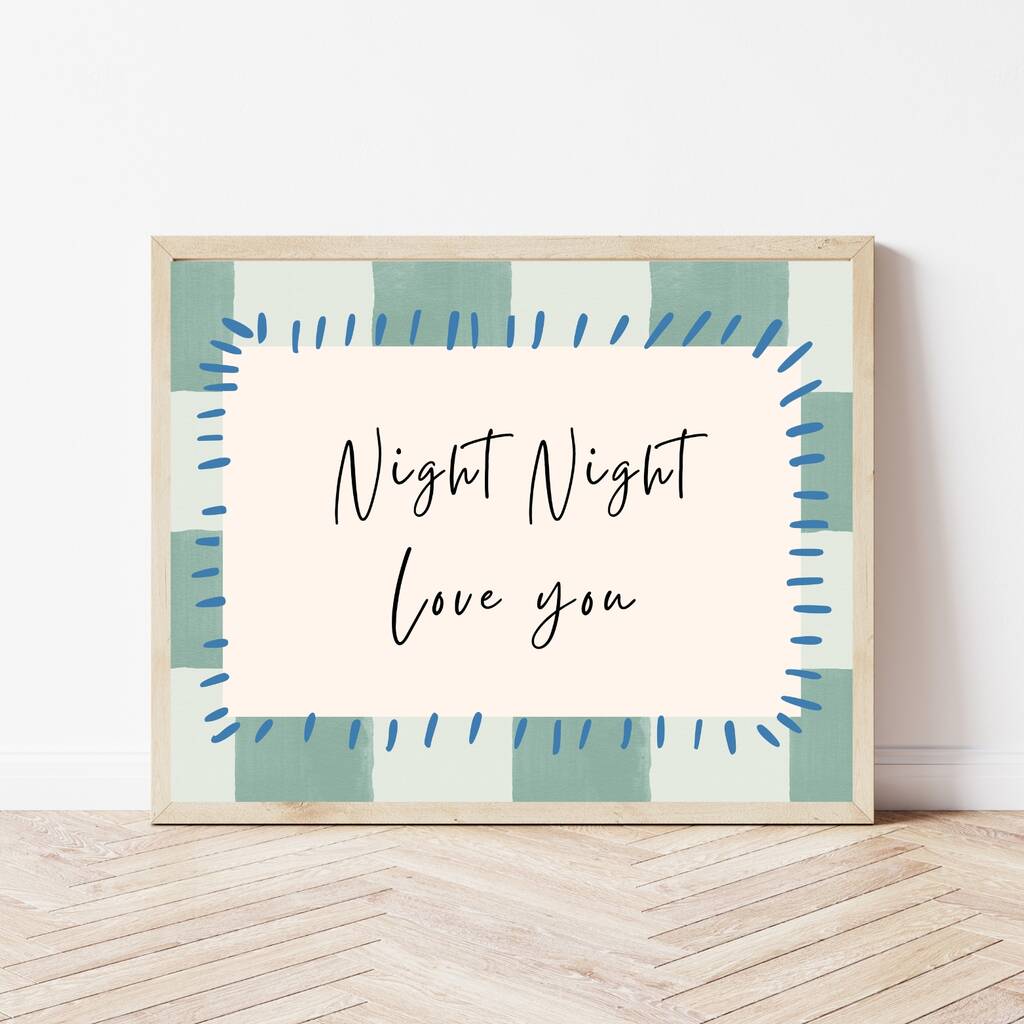 A4 Modern, Art Print, Night Night, Love You, Green Checkerboard