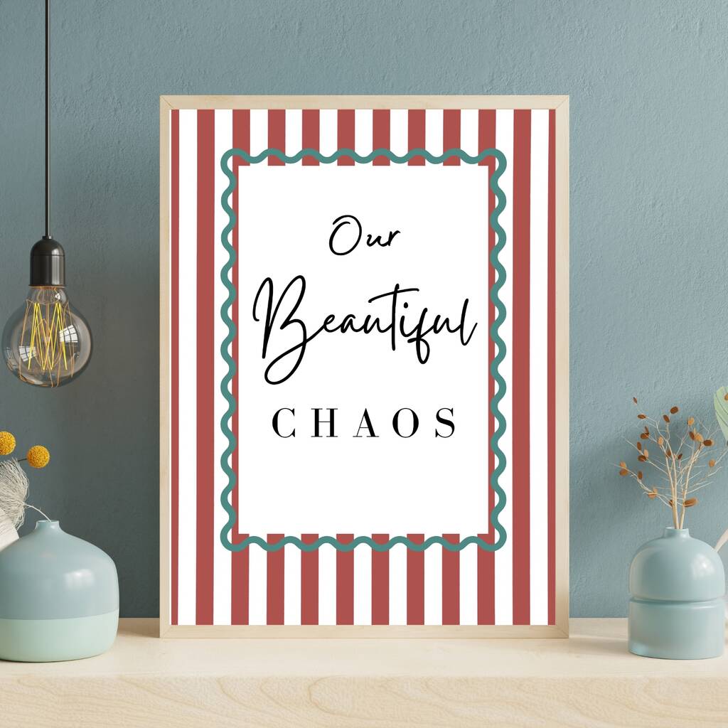 A4 Modern, Art Print, 'Our beautiful chaos' Red Stripes