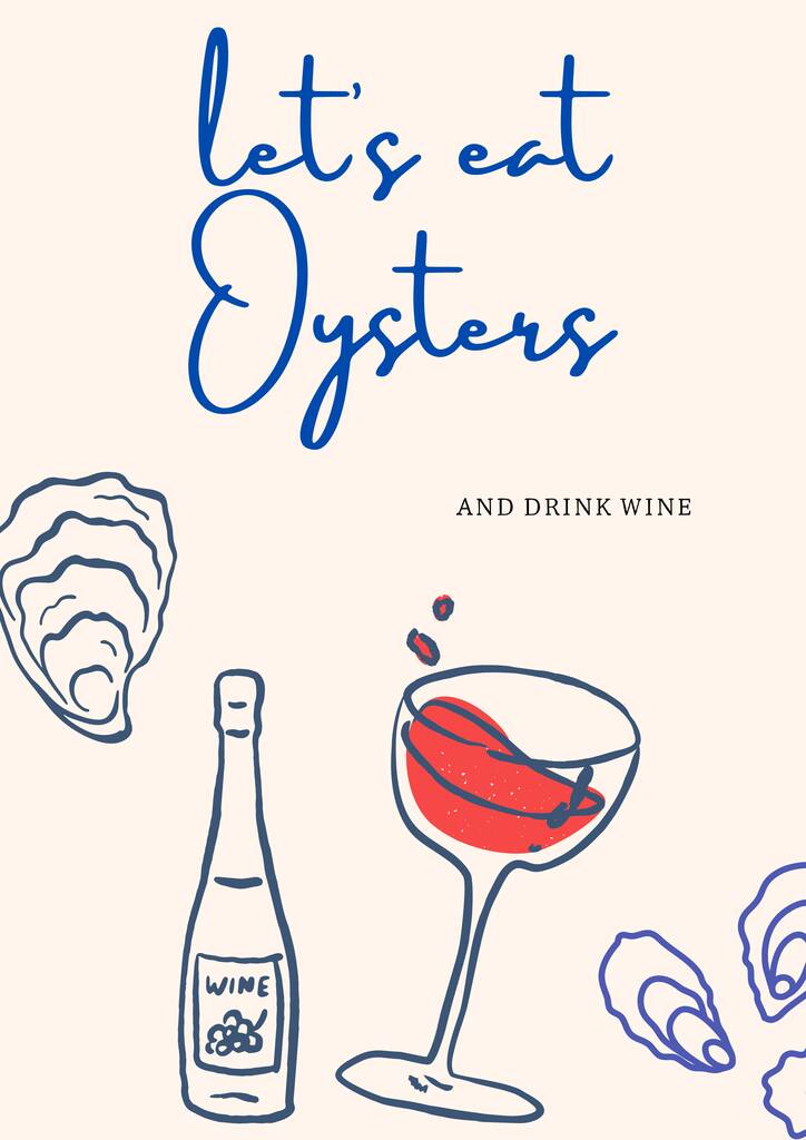Oysters and wine print - Let's eat oysters and drink wine, kitchen print, quirky art print, food & drink print, gift for foodie, home print