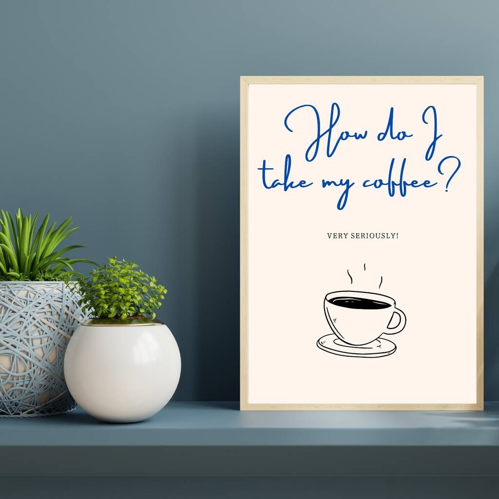 How do I take my coffee? Very seriously! print, coffee print, kitchen print, gift for coffee lover, quirky art print, home print, wall art