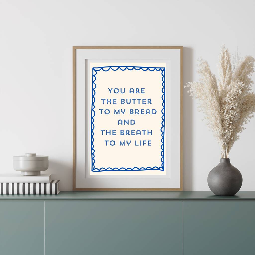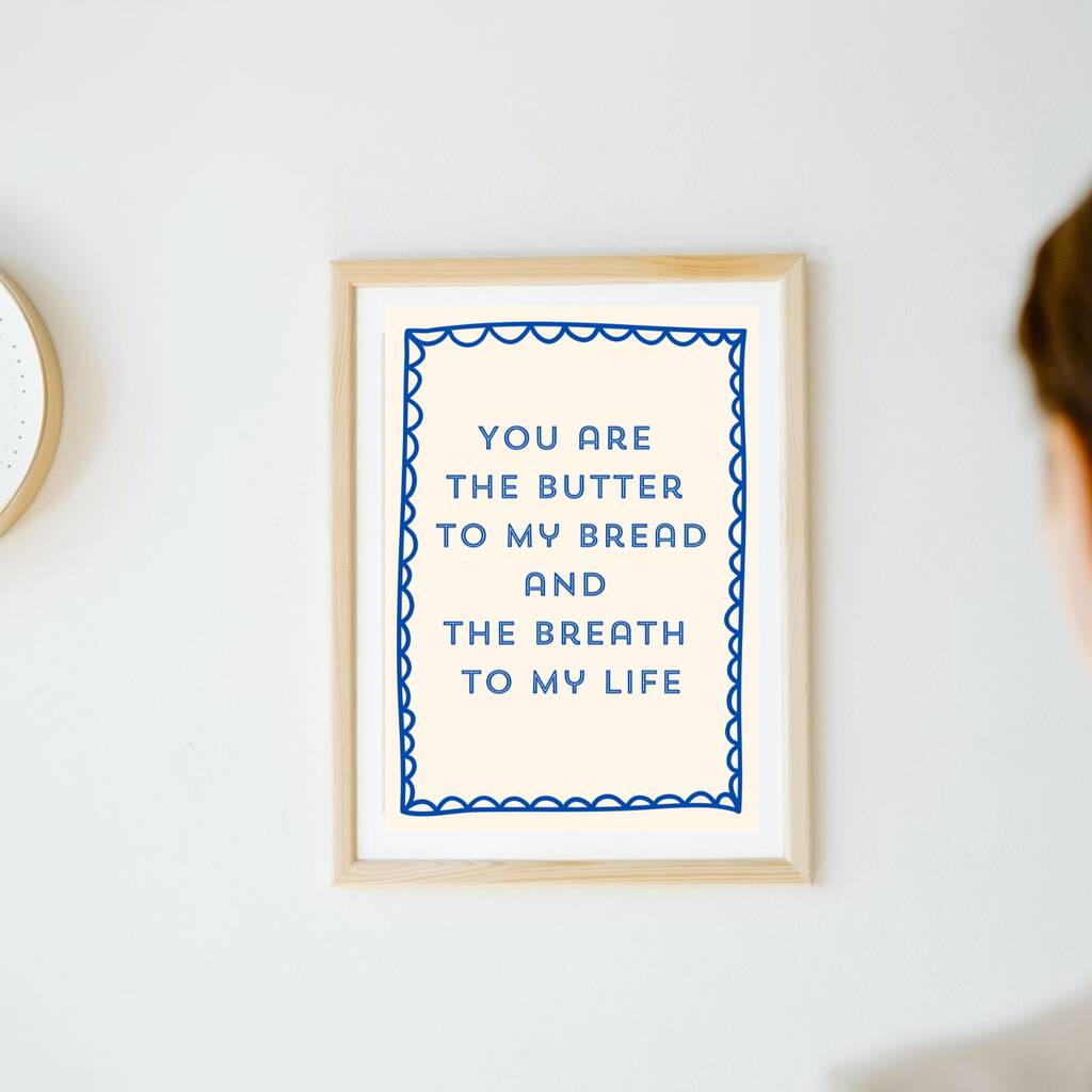 • A4 Typography Print You Are Butter To My Bread And The Breath To My Life, thumbnail 4 of 5