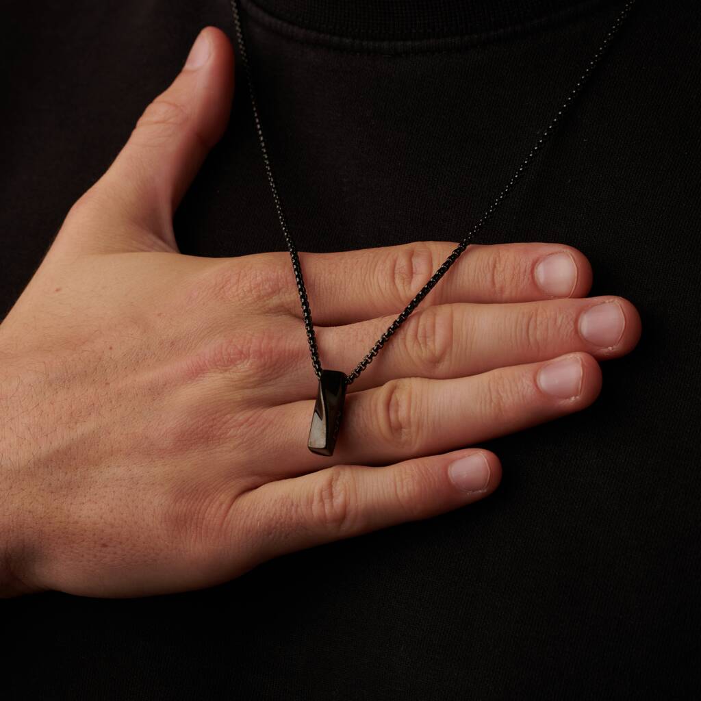 Crafted from premium 316L stainless steel, this black rectangle wave pendant features a smooth, sculpted curvature that reflects light with refined precision. Its polished surface offers a mirror-like finish, creating a modern yet timeless aesthetic designed for everyday wear. Built to endure, the piece is fully resistant to tarnishing, corrosion, and fading—crafted to maintain its brilliance over time.