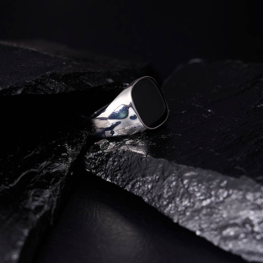 • Engravable Silver Black Onyx Signet Ring, thumbnail 1 of 11