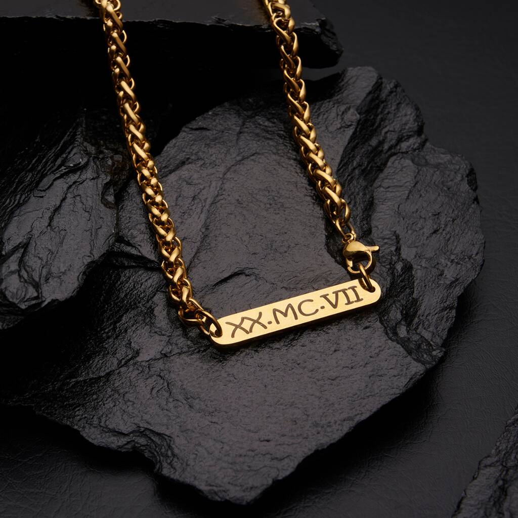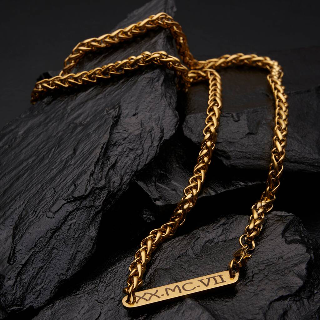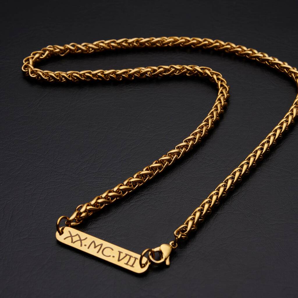 The Engraved Gold Wheat Chain blends heritage craftsmanship with modern individuality. Expertly hand-woven for a bold, textured silhouette, each link reflects precision and strength. Crafted from premium 316L stainless steel and finished with a rich layer of 18k gold plating, it delivers enduring shine and resilience designed to last a lifetime.