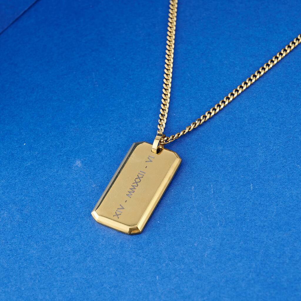 Designed with timeless confidence and crafted for meaning, this Gold Dog Tag Pendant is made from premium 316L stainless steel and finished with a rich layer of 18K gold plating for a lasting, high-shine finish.