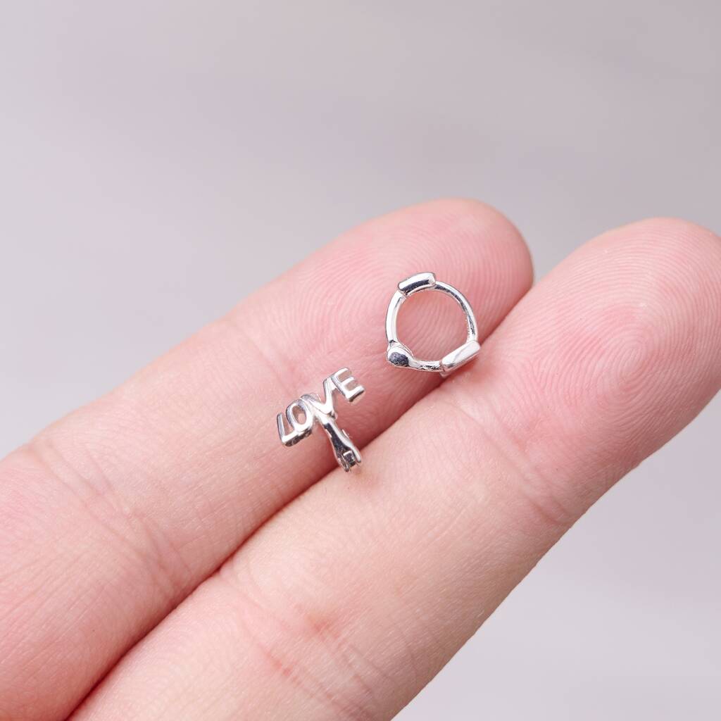 Silver Love Script Hoop Earrings, Valentines Earrings